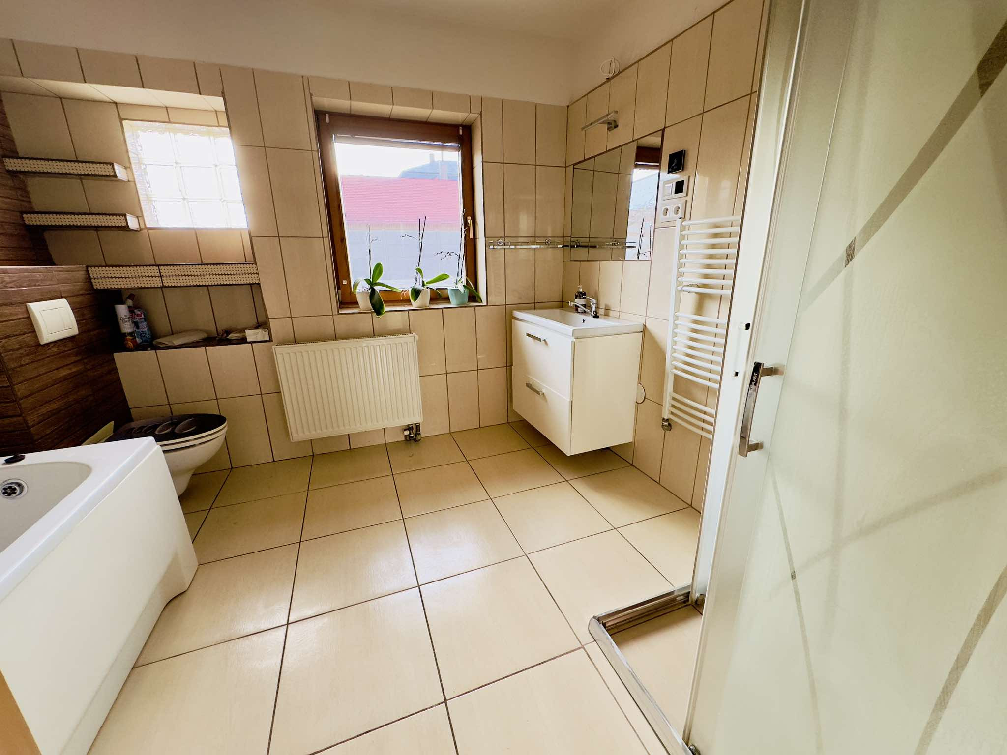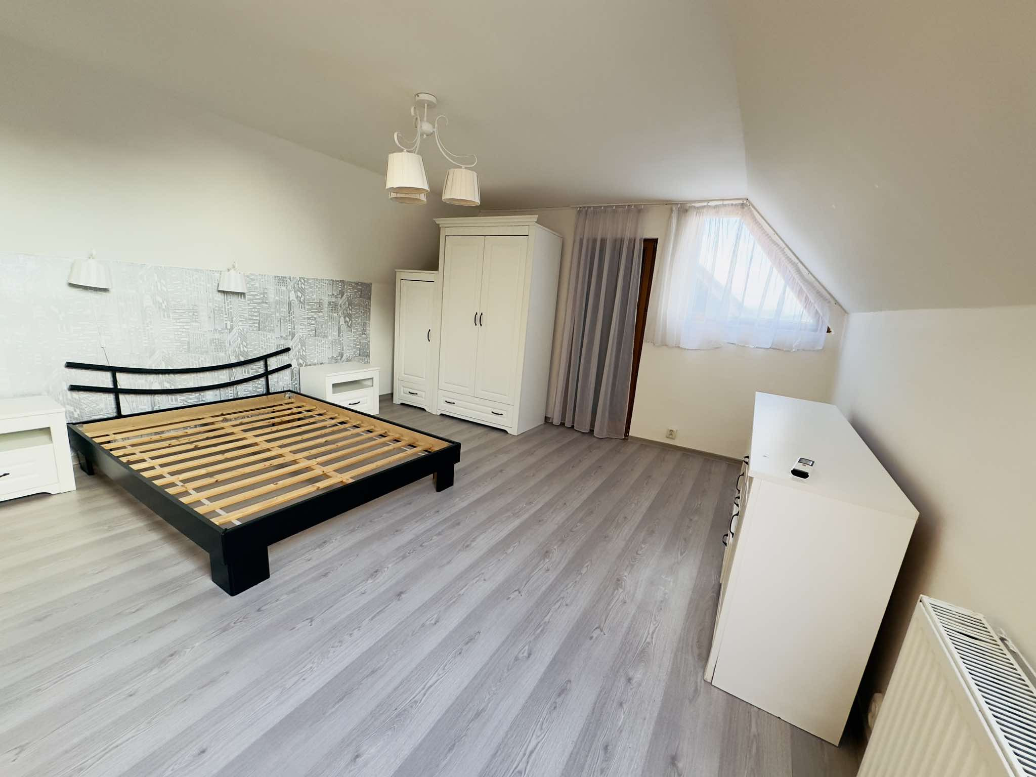 Poschodie: 3x obývacia izba, z toho dve s klimatizáciou, kúpeľňa, odkladací priestor a miestnosť s predprípravou na saunu, výstup na povalu nad náraďovňou s možnosťou vytvorenia ďalšej obývacej miestnosti.