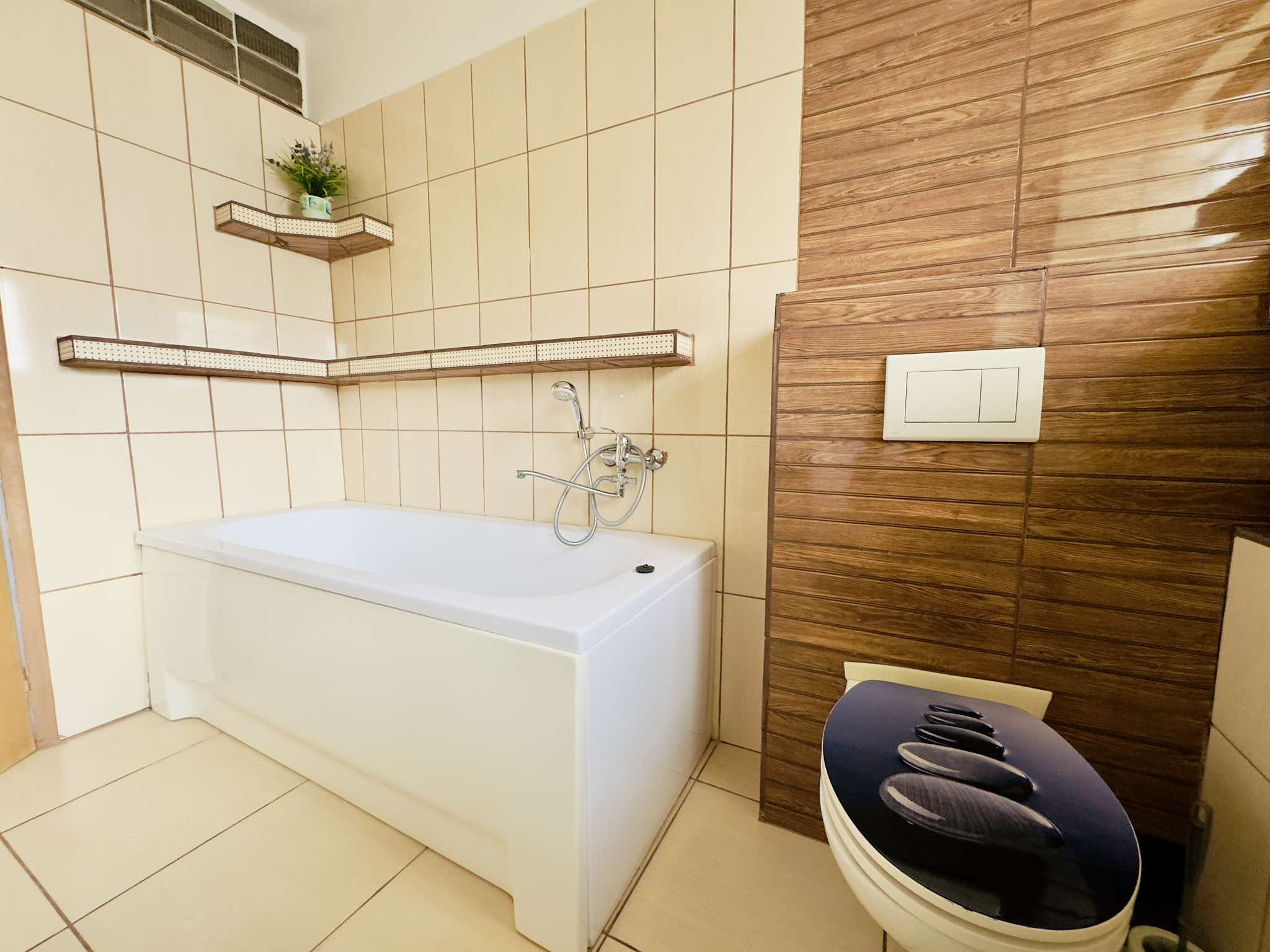 V dome sa nachádzajú dve kúpeľne s WC a miestnosť s predprípravou na saunu a prípojkou 380V.