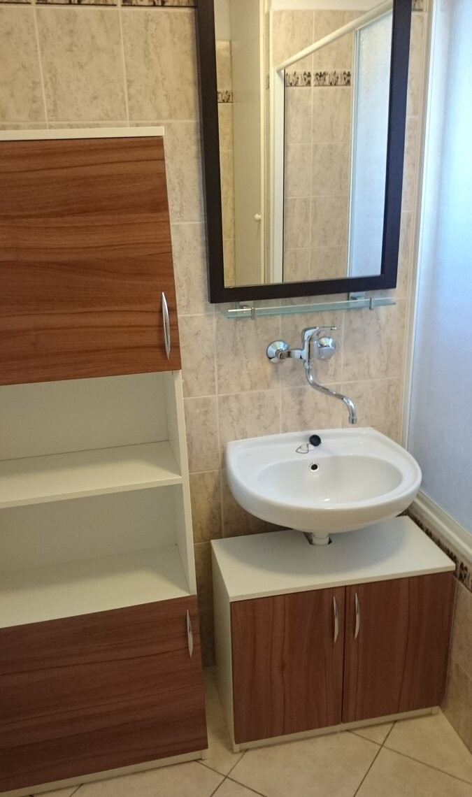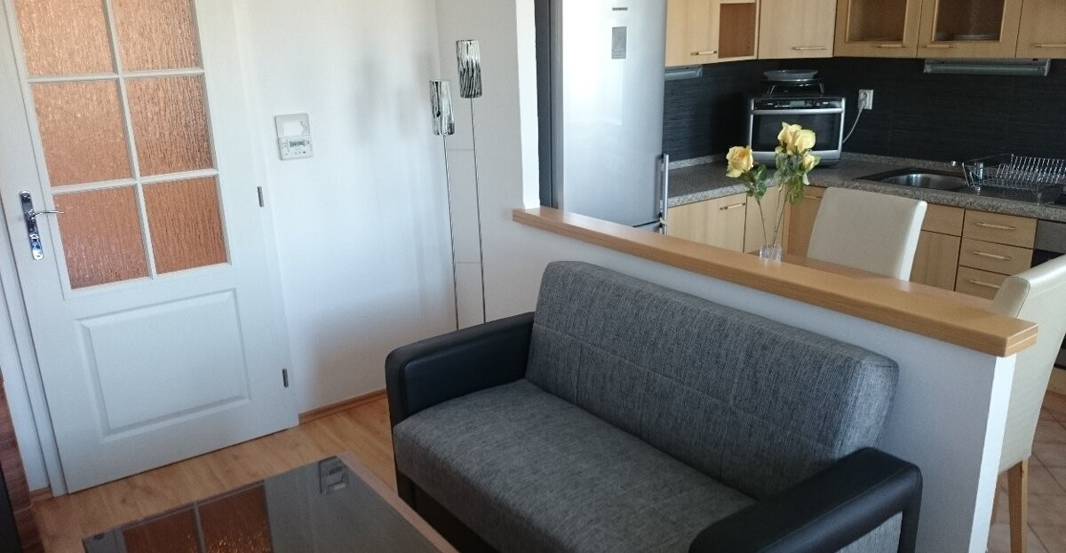 Nehnuteľnosť sa prenajíma kompletne zariadená, kuchynskú časť od obývacej časti oddeľuje barový pult. Kúpeľňa je vybavená vaňou a je spojená s WC, pričom sa tam nachádza aj okno. Byt má vlastný novy plynový kotol a nové plastové okná so žalúziami.