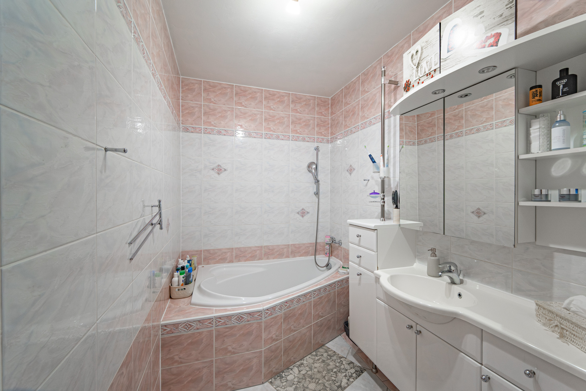 -veľká kúpeľňa s vaňou a dostatkom úložného miesta