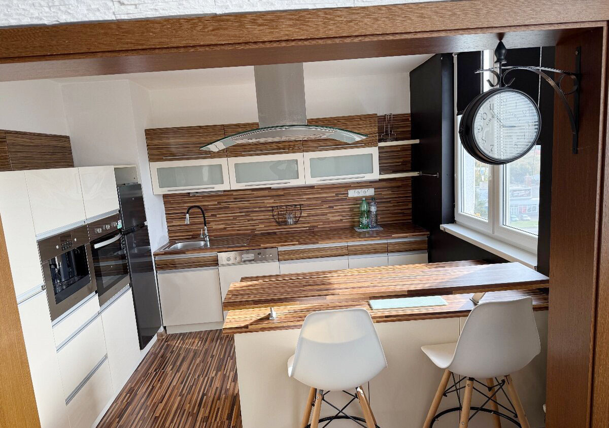 Kompletné zariadenie: Byt sa predáva so všetkým zariadením (ako na fotografiách) – vrátane zabudovaných spotrebičov v kuchyni a moderného nábytku.