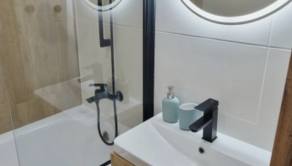 plastové okná, v obývačke a izbách plávajúca podlaha, v chodbe a spálni vyhotovené vstavané skrine na mieru, kúpeľni vaňa, umývadlo.