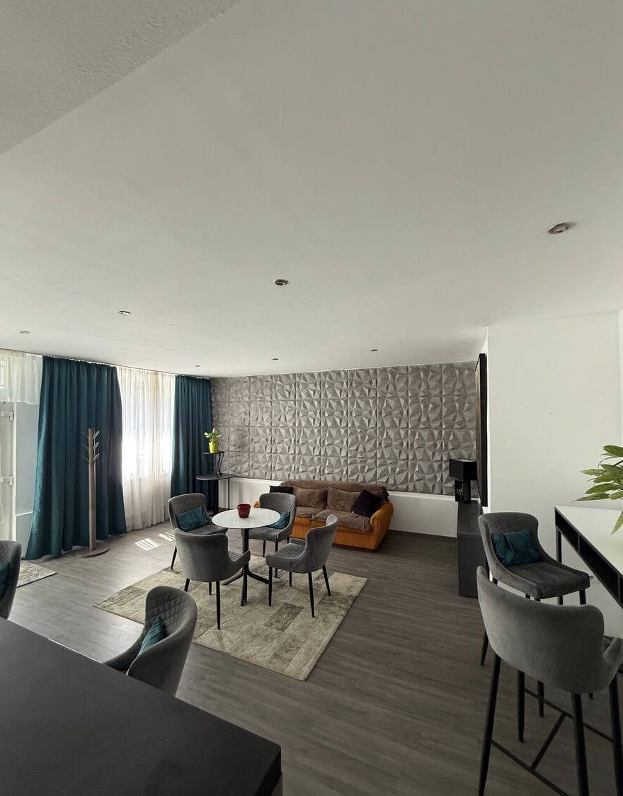 plastové okná, v obývačke a izbách plávajúca podlaha, v chodbe a spálni vyhotovené vstavané skrine na mieru, kúpeľni vaňa, umývadlo,v kuchyni je pekný murovaný barový pult a tiež urobené bodové osvetlenie.