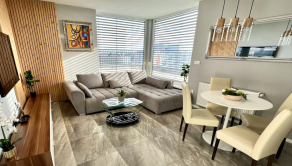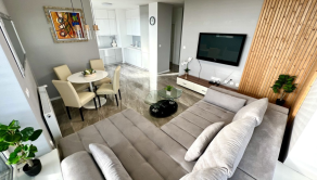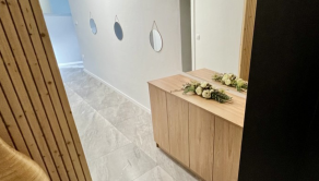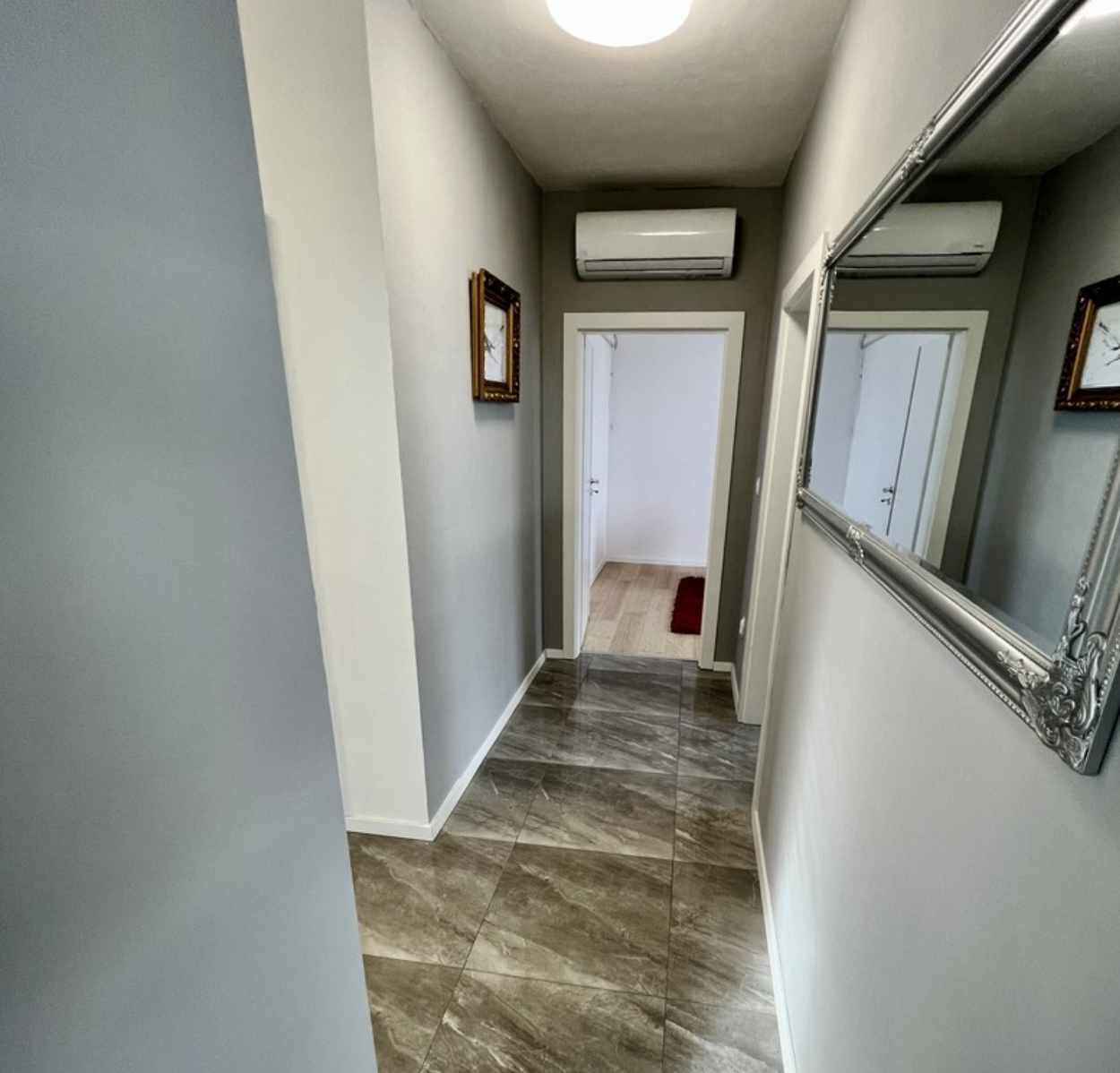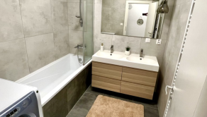 plastové okná, v obývačke a izbách plávajúca podlaha, v chodbe a spálni vyhotovené vstavané skrine na mieru aj s postelom,kúpeľni vaňa, umývadlo,klimatizácia,zariadená kuchyňa,smart tv.