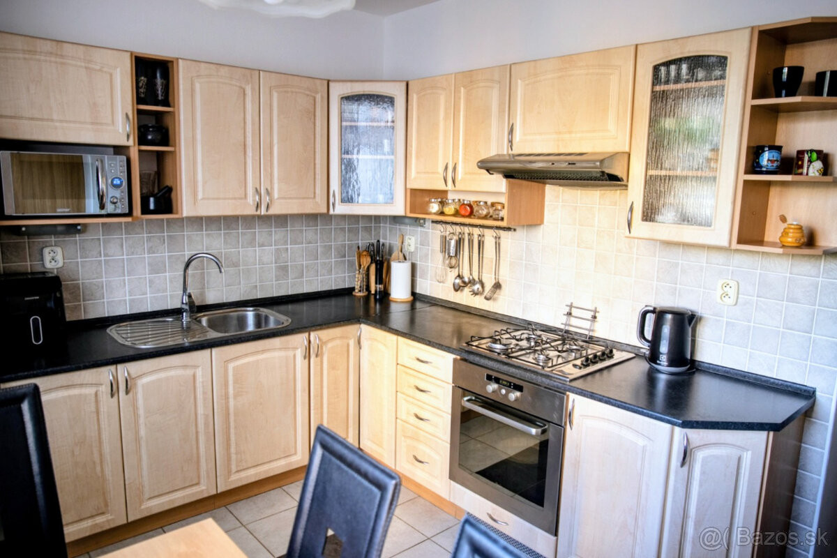 Byt prešiel čiastočnou rekonštrukciou, elektrina, murované jadro, okná, podlahy, obklady na stenách. Pozostáva zo vstupnej chodby, kuchyne, ktorá má špajzu, detskej izby, obývacej izby, spálne, odkiaľ sa vychádza na balkón s krásnym výhľadom, kúpeľne a WC.. K bytu patria 2 veľké pivnice. Bytový dom je zo teplených panelov, nový výťah, naplánovaná fasáda.