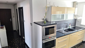– kuchyňa + obývačka: kuchynská linka so zabudovanými spotrebičmi, chladnička, obývačková zostava, rozkladací gauč s úložným priestorom a TV