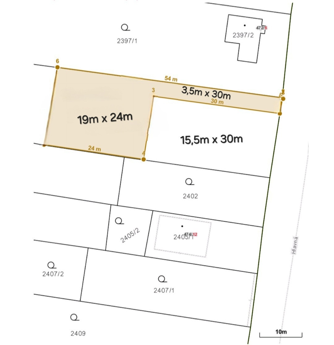 Rozmer pozemku 19m x 54m