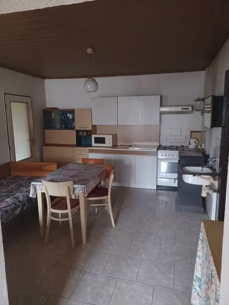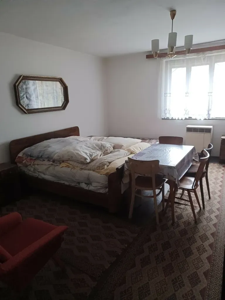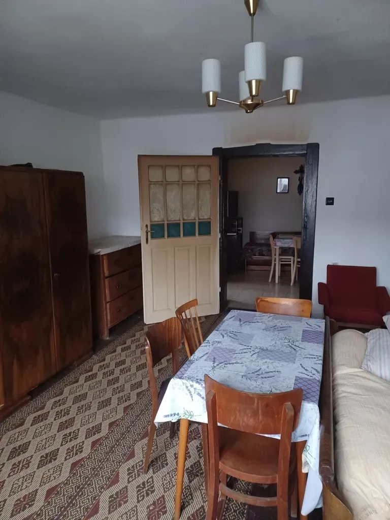 Dispozičné riešenie: vstupná chodba, kuchyňa, dve obývacie izby, kúpeľňa s WC, komora a technická miestnosť, ktoré majú zabezpečený vstup z vonku. Dom je čiastočne podpivničený, napojený na verejný vodovod, elektrinu a plyn. Vykurovanie je zabezpečené plynové alebo tuhým palivom cez krbové kachle umiestnené v kuchyni. Dom je v pôvodnom stave, starší ale udržiavaný, s novou strešnou krytinou.