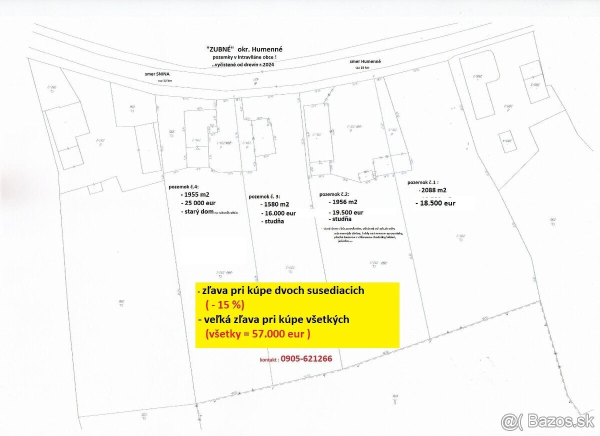 Ponuka na predaj (alebo výmenu za byt v Humennom) súbor stavebných pozemkov s celkovou výmerou približne 7 500 m², nachádzajúcich sa priamo v intraviláne a bezprostredne susediacich s lesom — ideálne pre súkromné rodinné sídlo, rodinný areál, agropodnikanie, chovateľské alebo rekreačné aktivity.