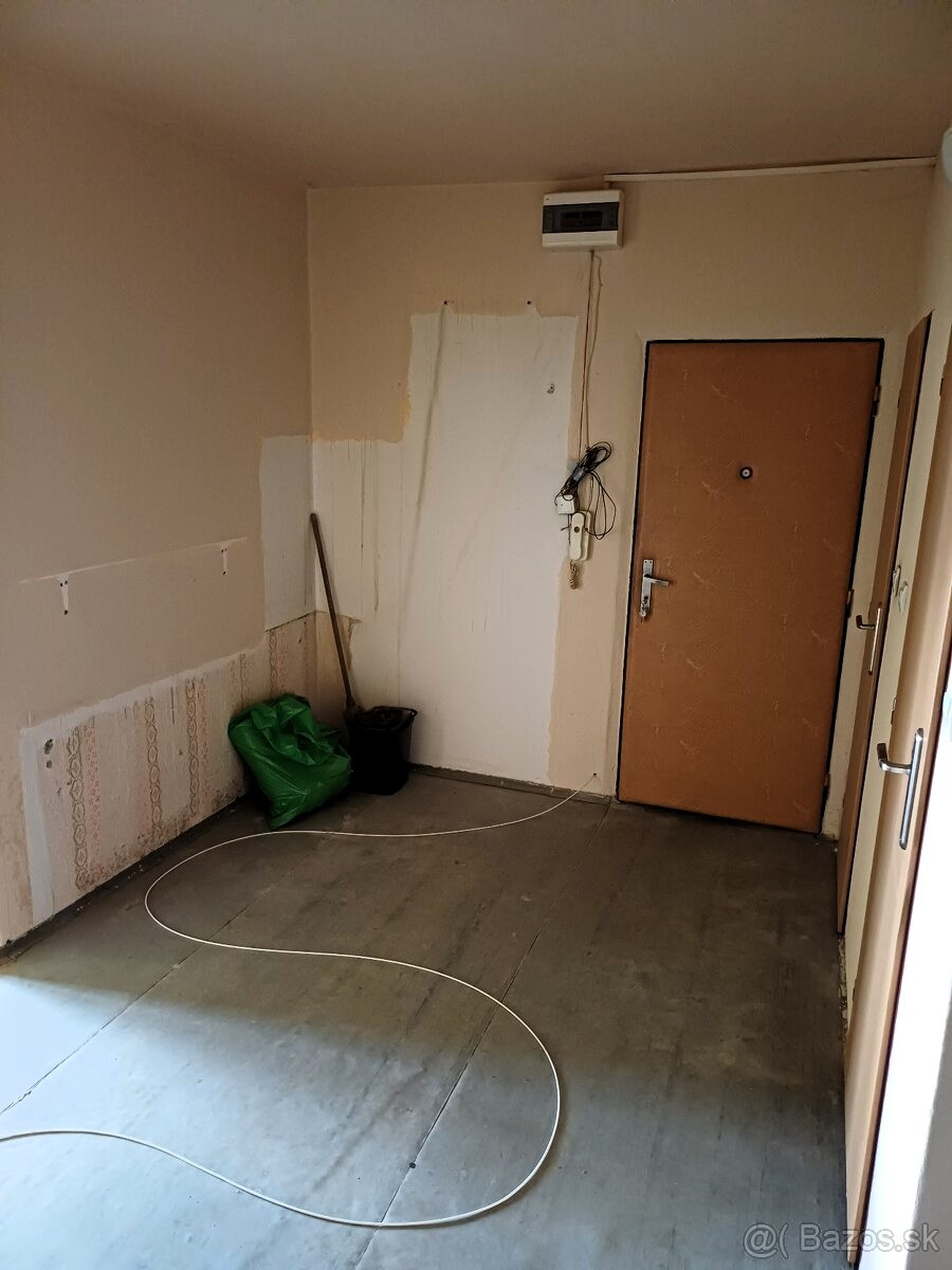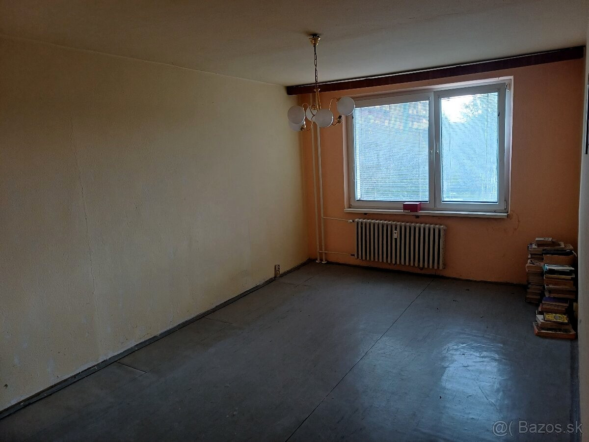 Byt je čiastočne zrekonštruovaný: plastové okná, murované jadro, kúpeľňa a WC oddelené (viď foto v inzeráte)