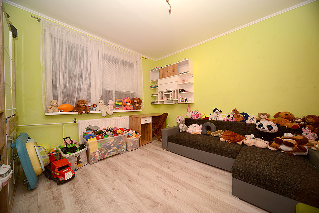 Vstupná chodba, kuchyňa,obývačka výstupom na terasu, komora, spálňa, detská izba s výstupom na terasu, chodba, samostatné WC a priestranná kúpeľňa.