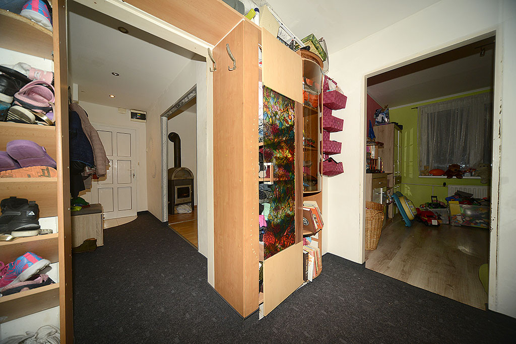 plastové okná, v obývačke a izbách plávajúca podlaha, na chodbe skriňa ,velká manželská postel,kúpeľni sprchový kút, umývadlo,zariadená kuchyňa 2x terasa.