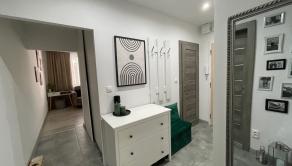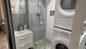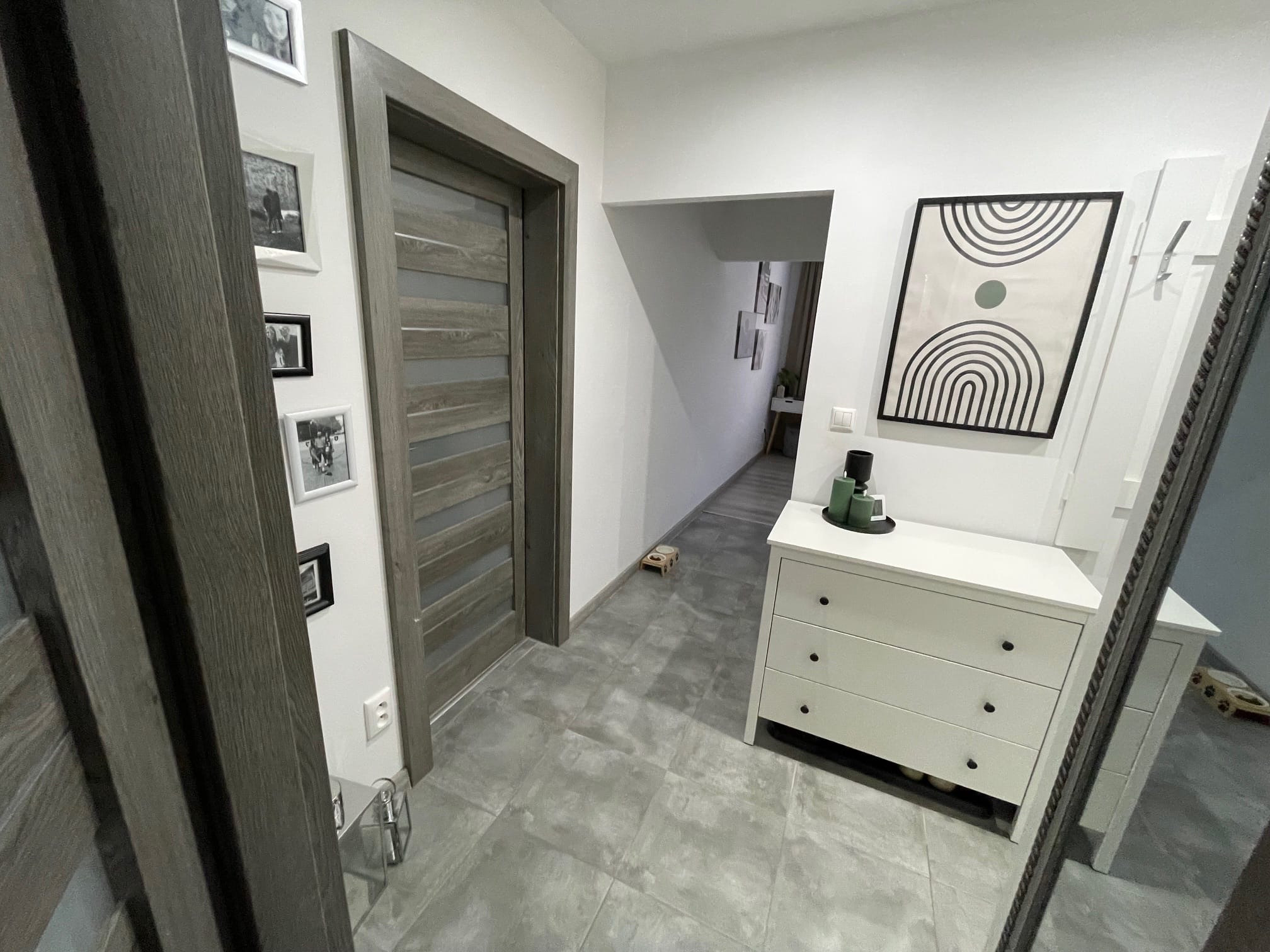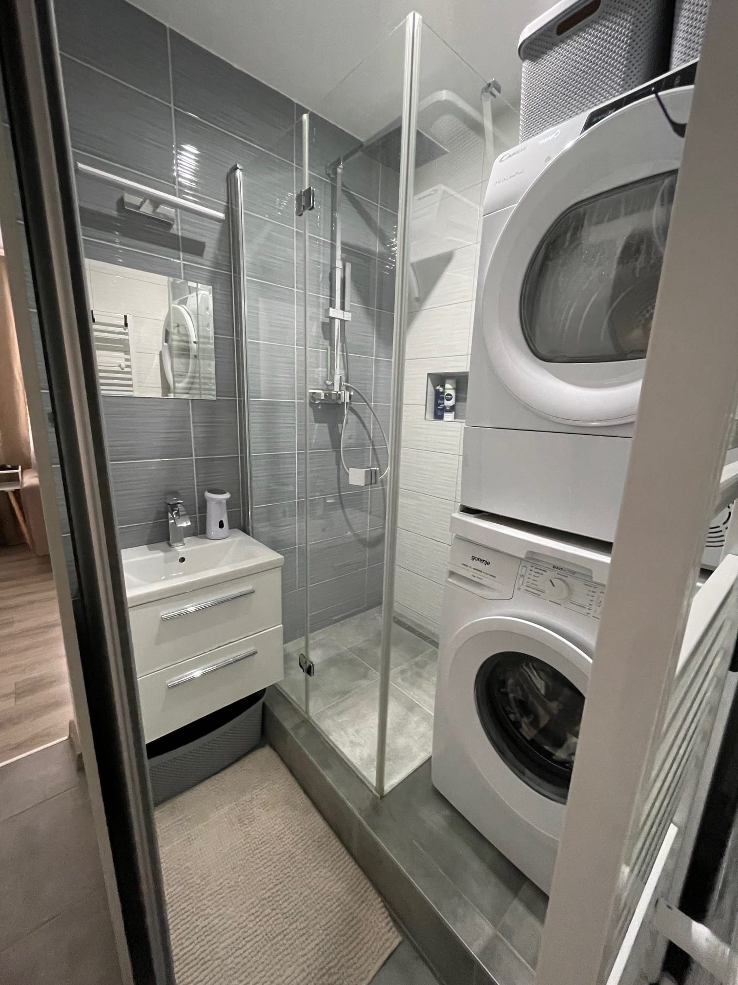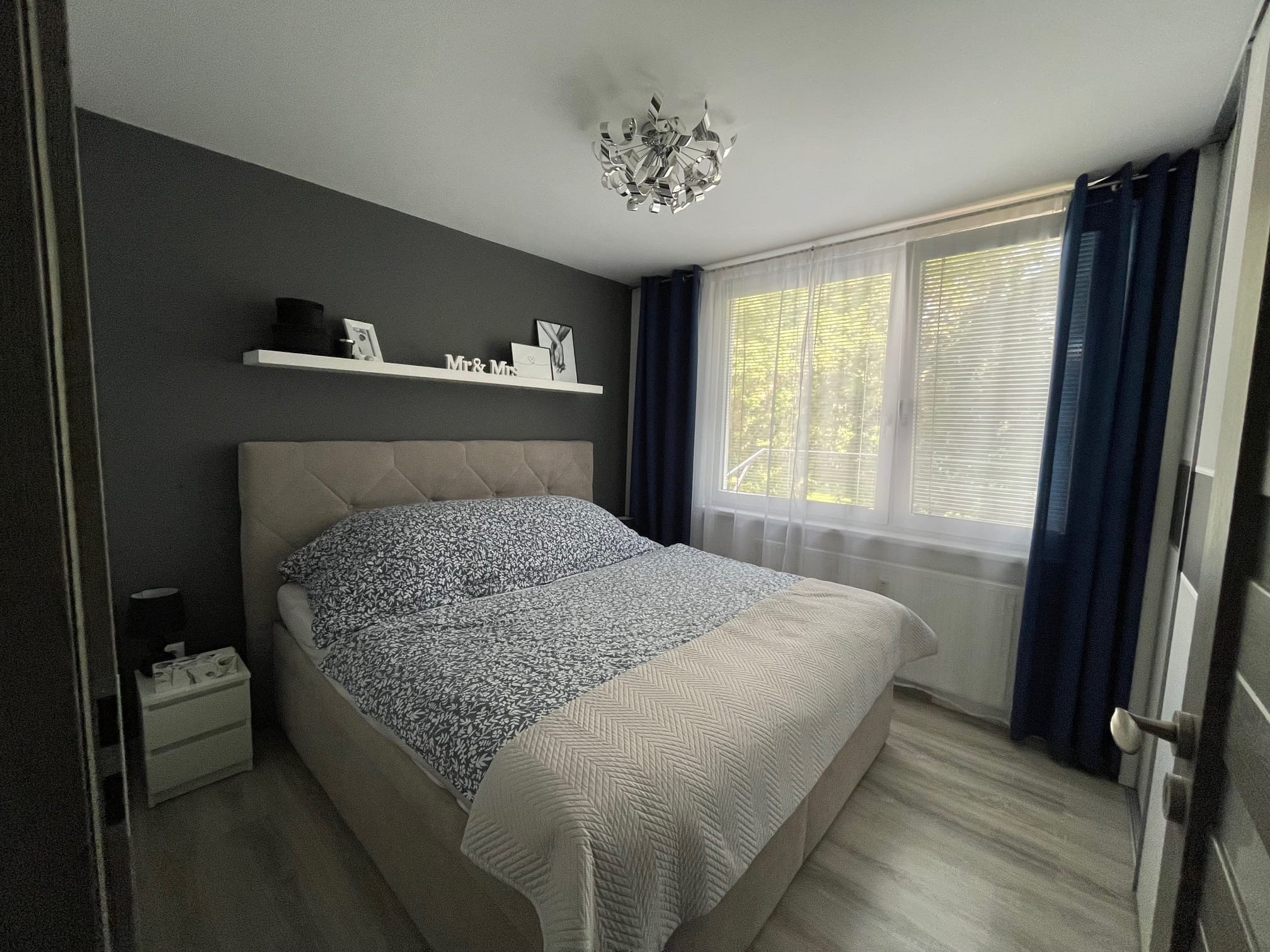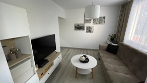 - Dispozícia a vybavenie: • priestranná obývacia izba s TV a pohodlným sedením, • spálňa s veľkou vstavanou skriňou, • detská/hosťovská izba alebo pracovňa, • kuchyňa s modernou linkou, vstavanými spotrebičmi, • kúpeľňa so sprchovým kútom a práčkou, • samostatné WC, • vstupná chodba s úložným priestorom. Byt je kompletne zariadený moderným nábytkom a pripravený na okamžité nasťahovanie. Všetko pôsobí svetlo, čisto a útulne.
