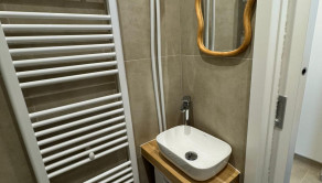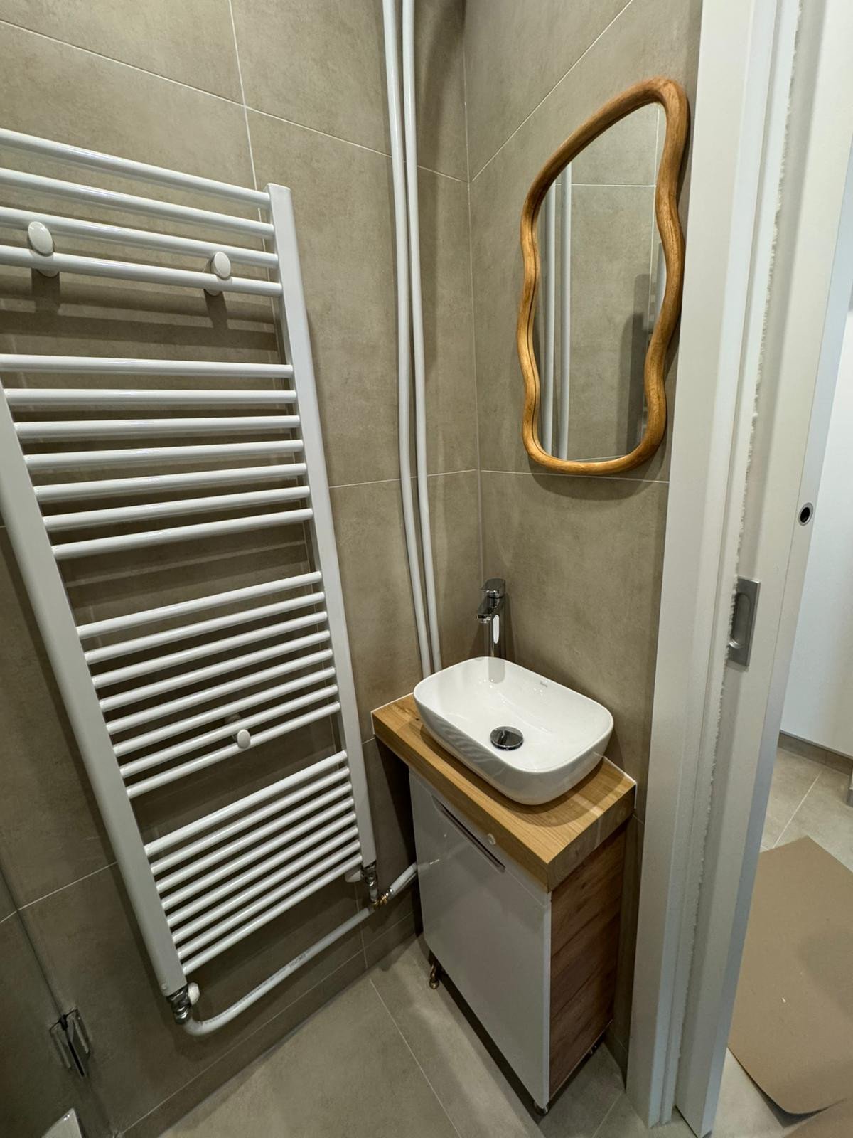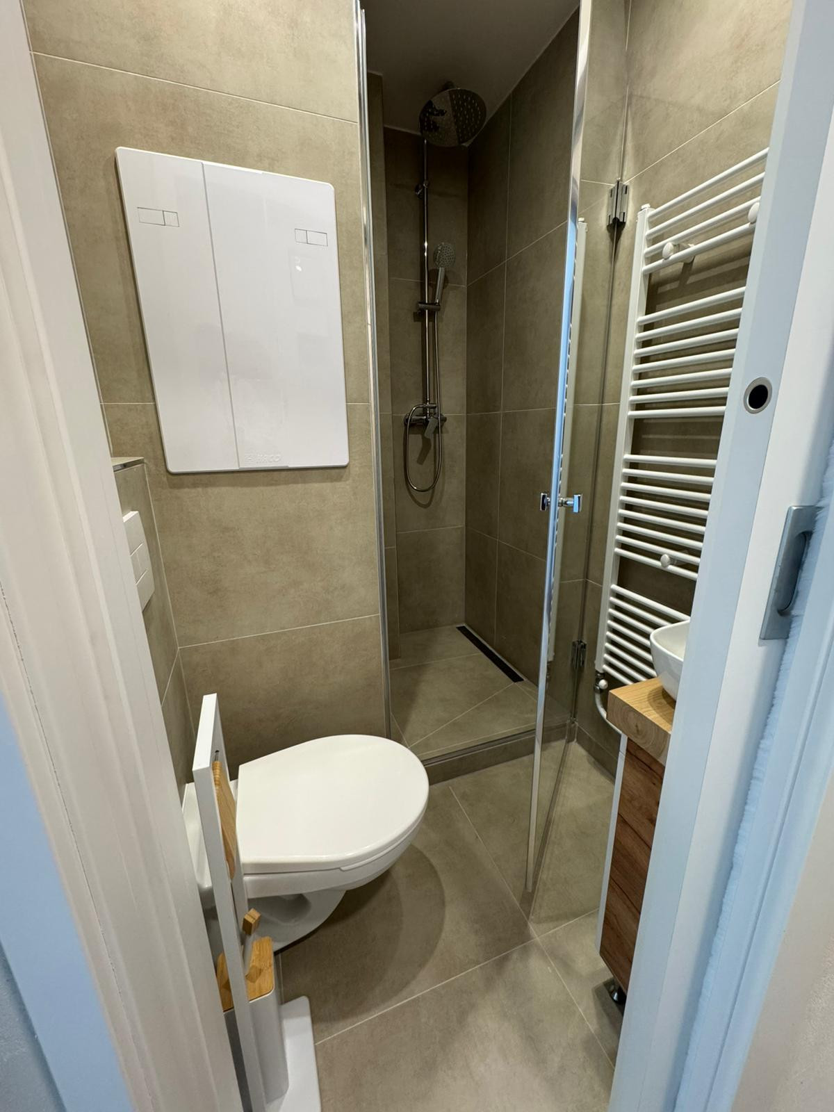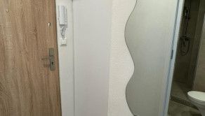 Dispozícia: jedna obytná miestnosť, kuchyňa, chodba, kúpeľňa so sprchovacím kútom, umývadlom a odvetraným WC.