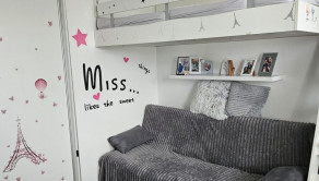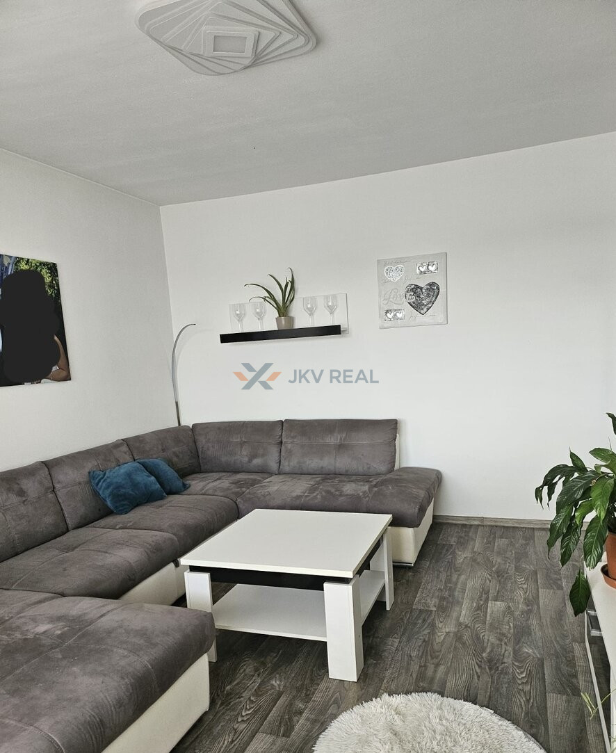 Dispozícia: veľmi dobre riešená: pozostáva zo vstupnej chodby, kuchyne prepojenej s obývacou izbou z ktorej je vstup na balkón, spálne, detskej izby, priestrannej kúpelne s vaňou a samostatného WC