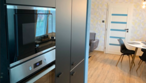 Byt je kompletne zariadený – nábytok, gauč, manželská posteľ, vstavané spotrebiče, TV 127cm Samsung, skriňa atď. Stačí sa len nasťahovať.