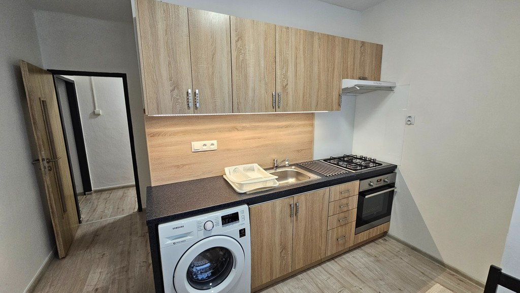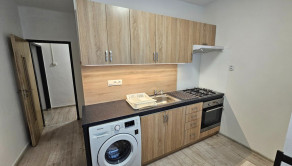 Byt sa predáva vrátane nábytku a spotrebičov – chladnička, vstavaná rúra, plynový sporák, digestor, práčka, sedenie pre 2 osoby, posteľ, skriňa, stôl, stolička, regály v komore.