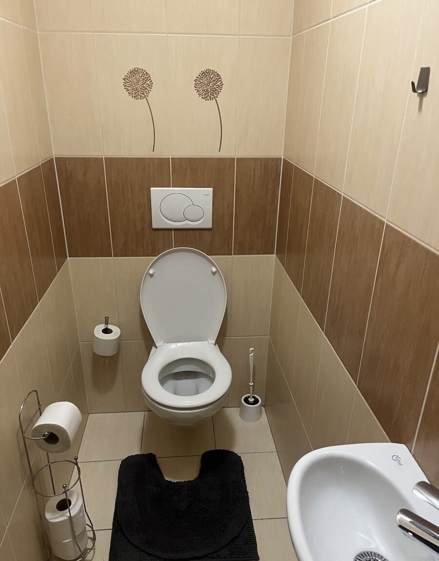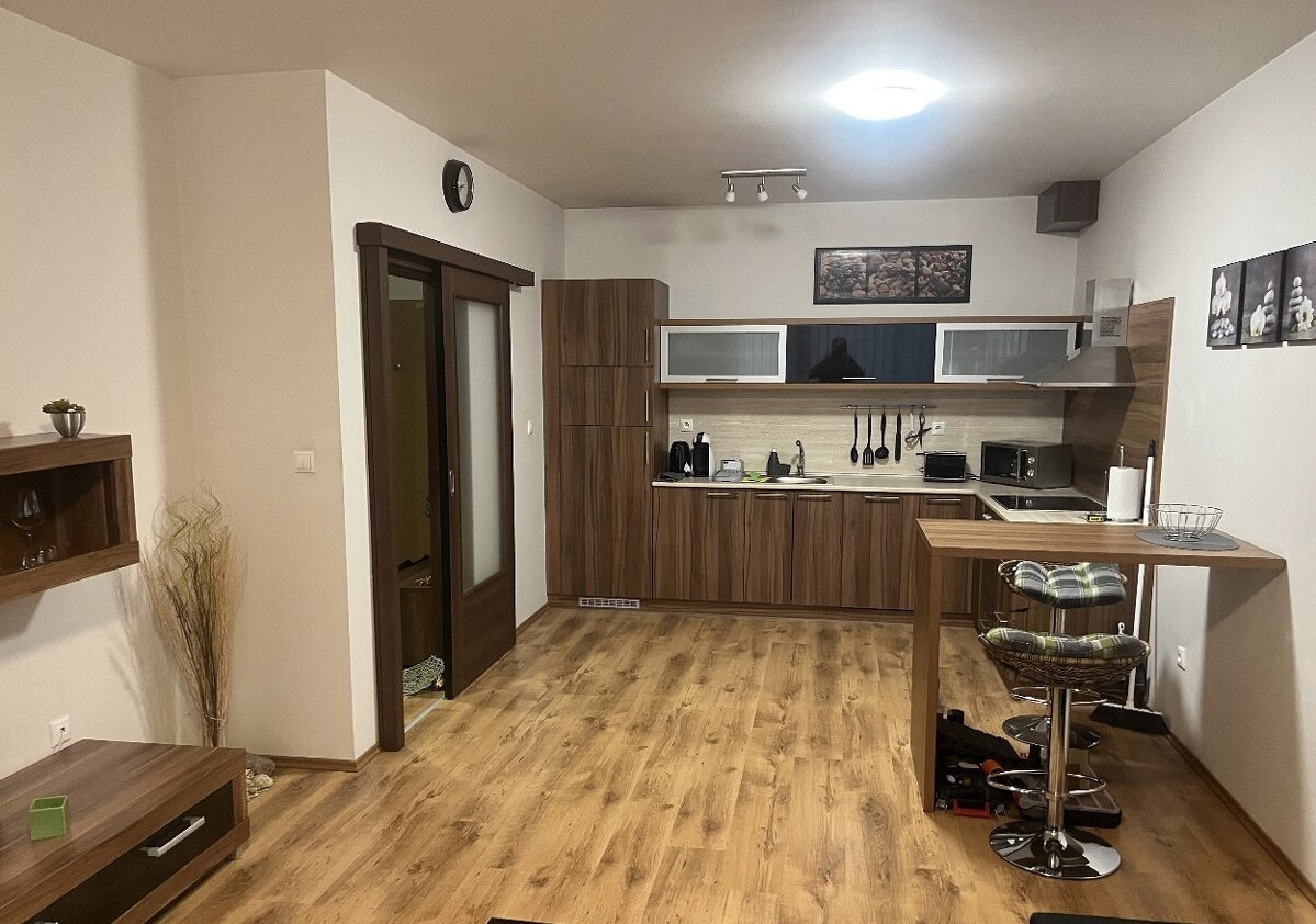 - Dispozícia: obývacia izba prepojená s kuchyňou, samostatná spálňa, kúpeľňa s vaňou a sprchovou zástenkou, samostatné WC