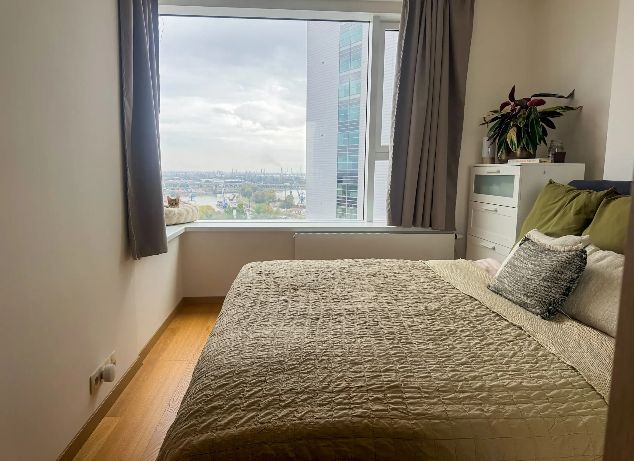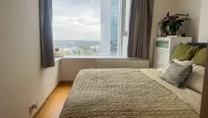 V byte nie je počuť mestský hluk ani susedov - vďaka výške poschodia (19:.poschodie) tu vládne absolútne ticho.