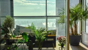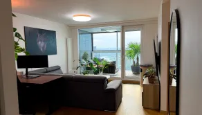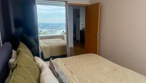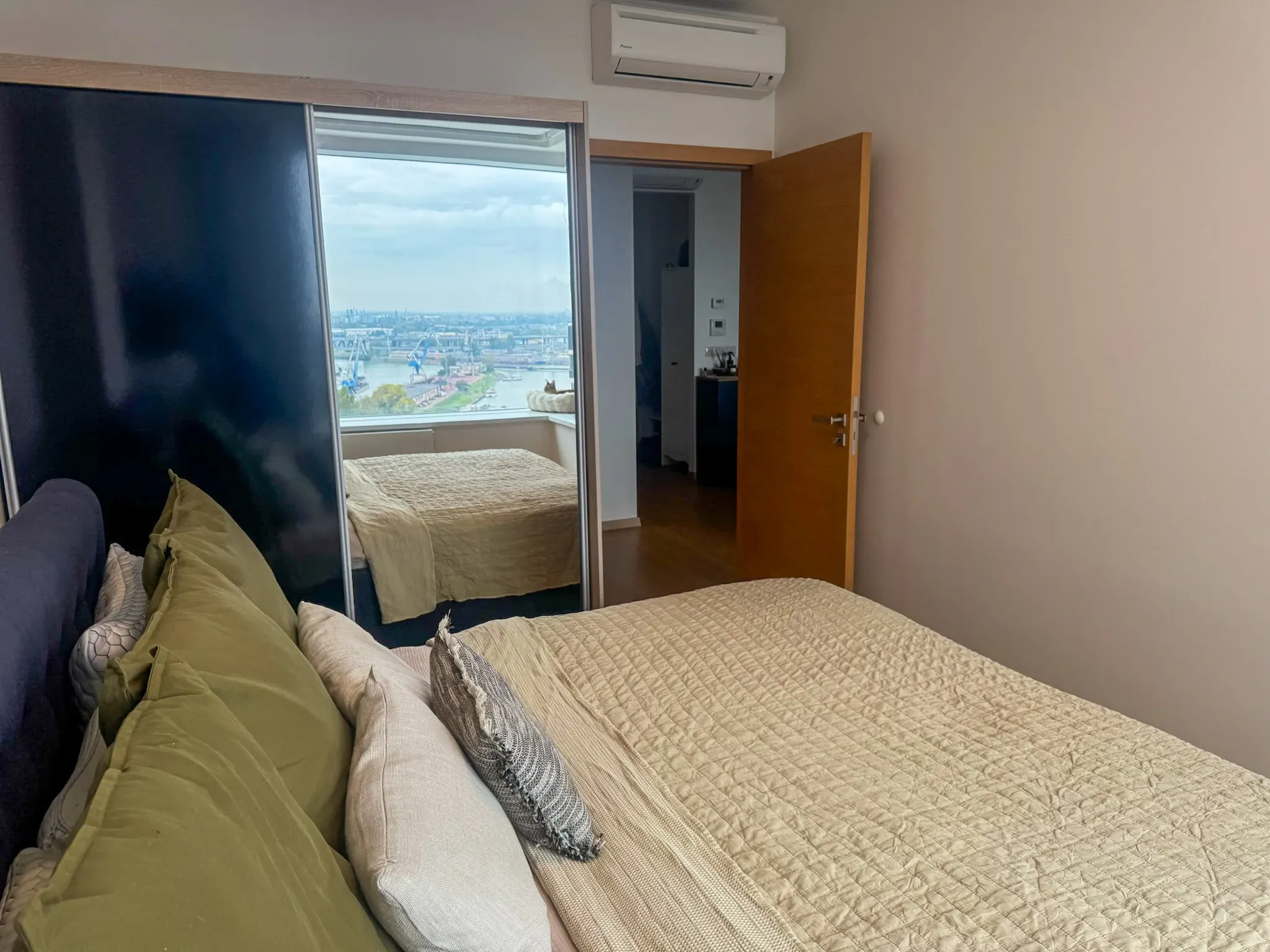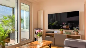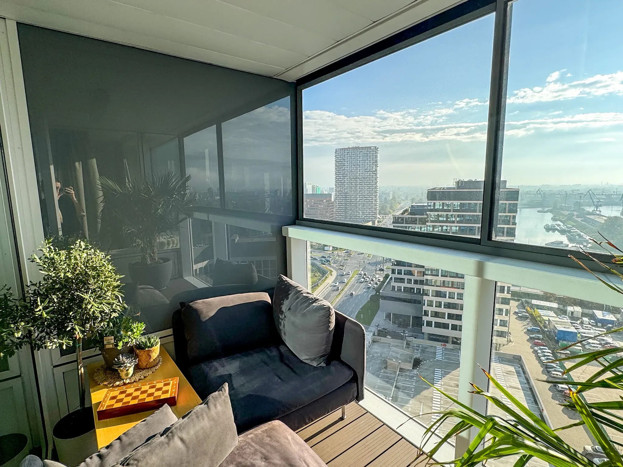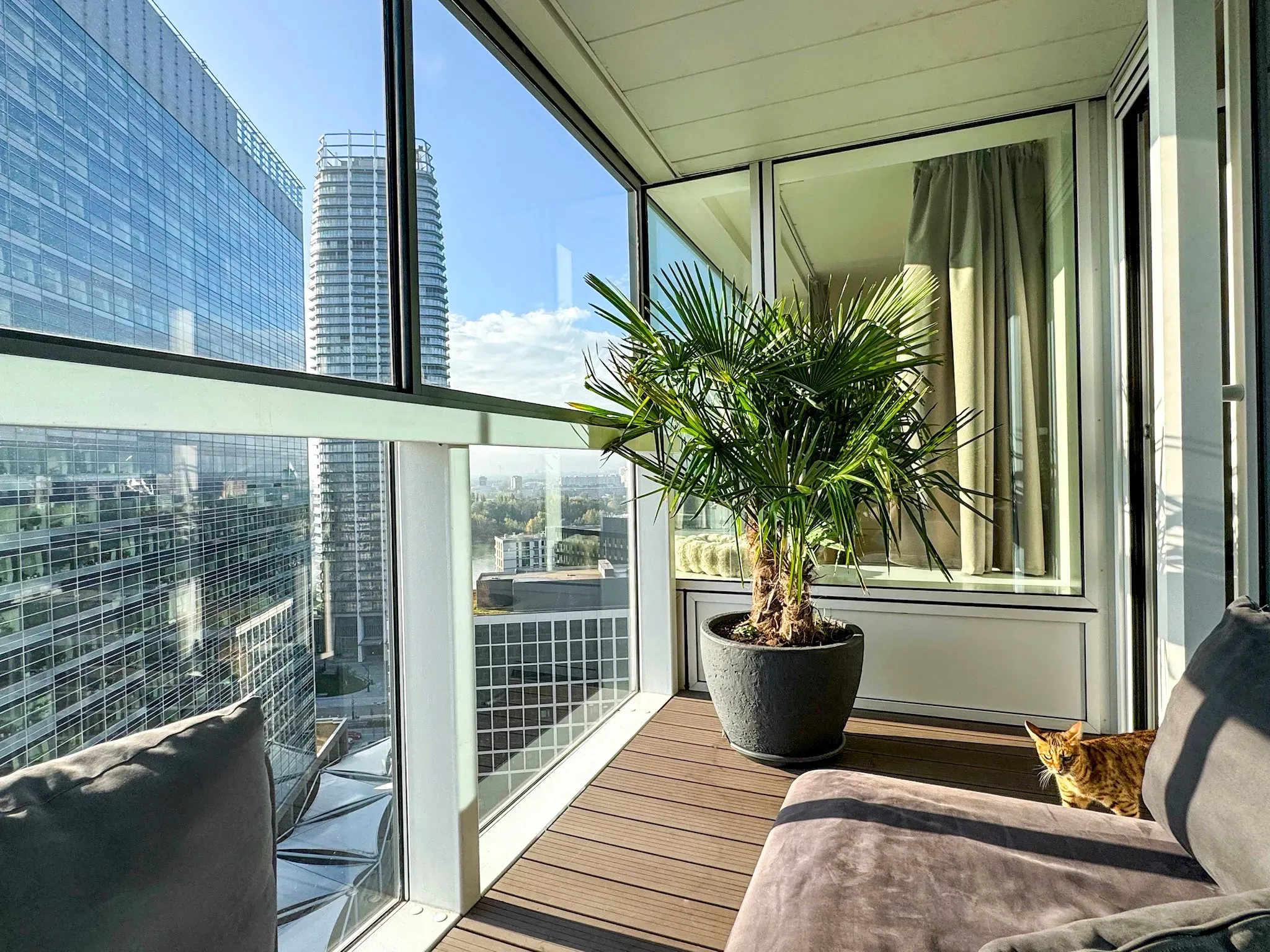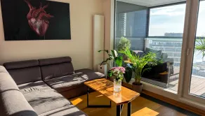 Súčasťou bytu je aj priestranná zasklená loggia (6 m2) - ideálne miesto na rannú kávu, oddych pri knihe či pracovnú pauzu s výhľadom na prístav a Eurovea Tower.