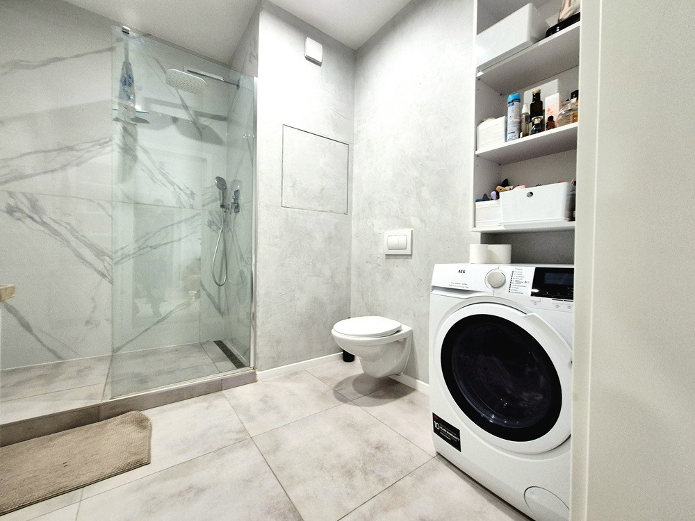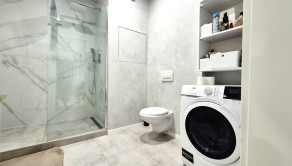 ● Kúpeľňa so sprchovým kútom je spolu s WC a vstupuje sa do nej z obývacej izby