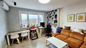 JKV REAL so súhlasom vlastníka ponúka na predaj 2-izbový byt s loggiou s krásnym panoramatickým výhľadom, ktorý sa nachádza hneď pri lese v tichej časti Karlovej Vsi.