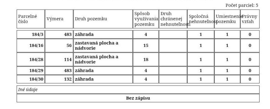 Pozemok je bez tiarch. Je možné ho použiť na stavbu dvoch samostatných rodinných domov s vlastným vstupom.