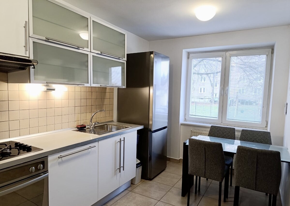 Realitná kancelária JKV REAL so súhlasom majiteľa ponúka na prenájom priestranný a kompletne zariadený 2-izbový byt s pivnicou (6 m²), situovaný na 1. poschodí tehlového bytového domu v jednej z najvyhľadávanejších a najtichších lokalít mesta. Byt je len pár minút od centra, no zároveň ponúka maximálne súkromie a pokojné bývanie. K bytu prislúcha aj parkovacie miesto, ktoré je zahrnuté už v cene nájmu.
