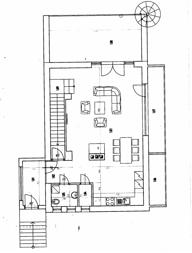 Cez zadný vchod prístup na peknú veľkú záhradu s udržiavaným trávnikom, ovocnými stromami, hriadkami na pestovanie zeleniny a s miestom pre bazén.