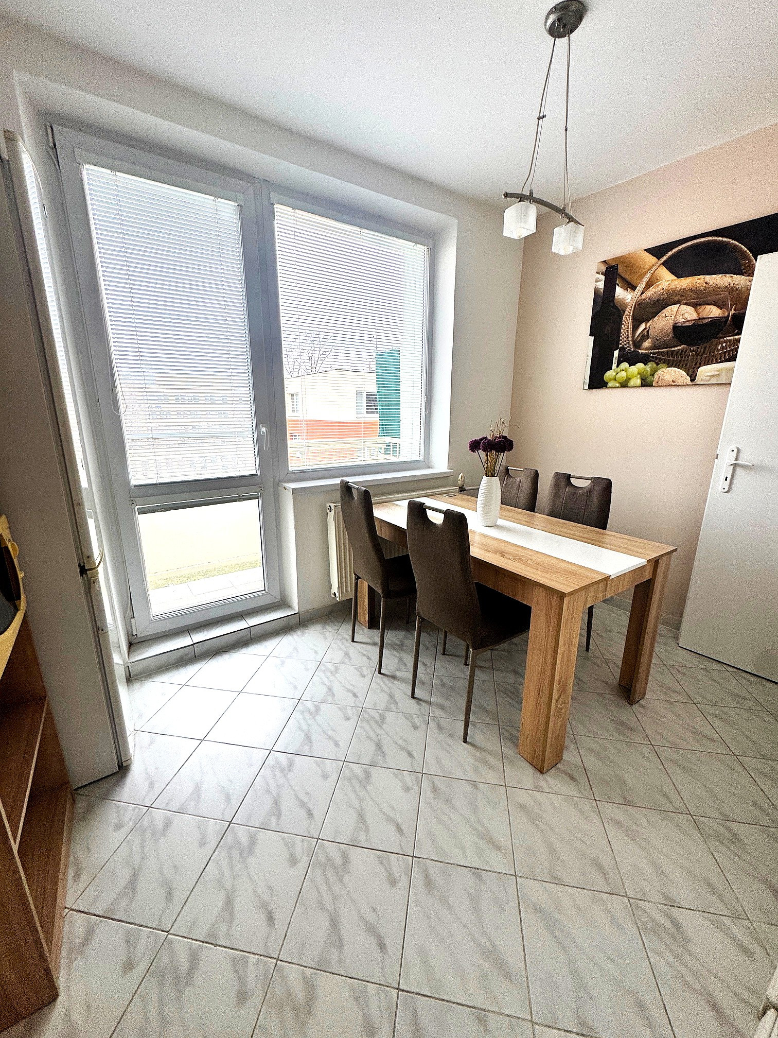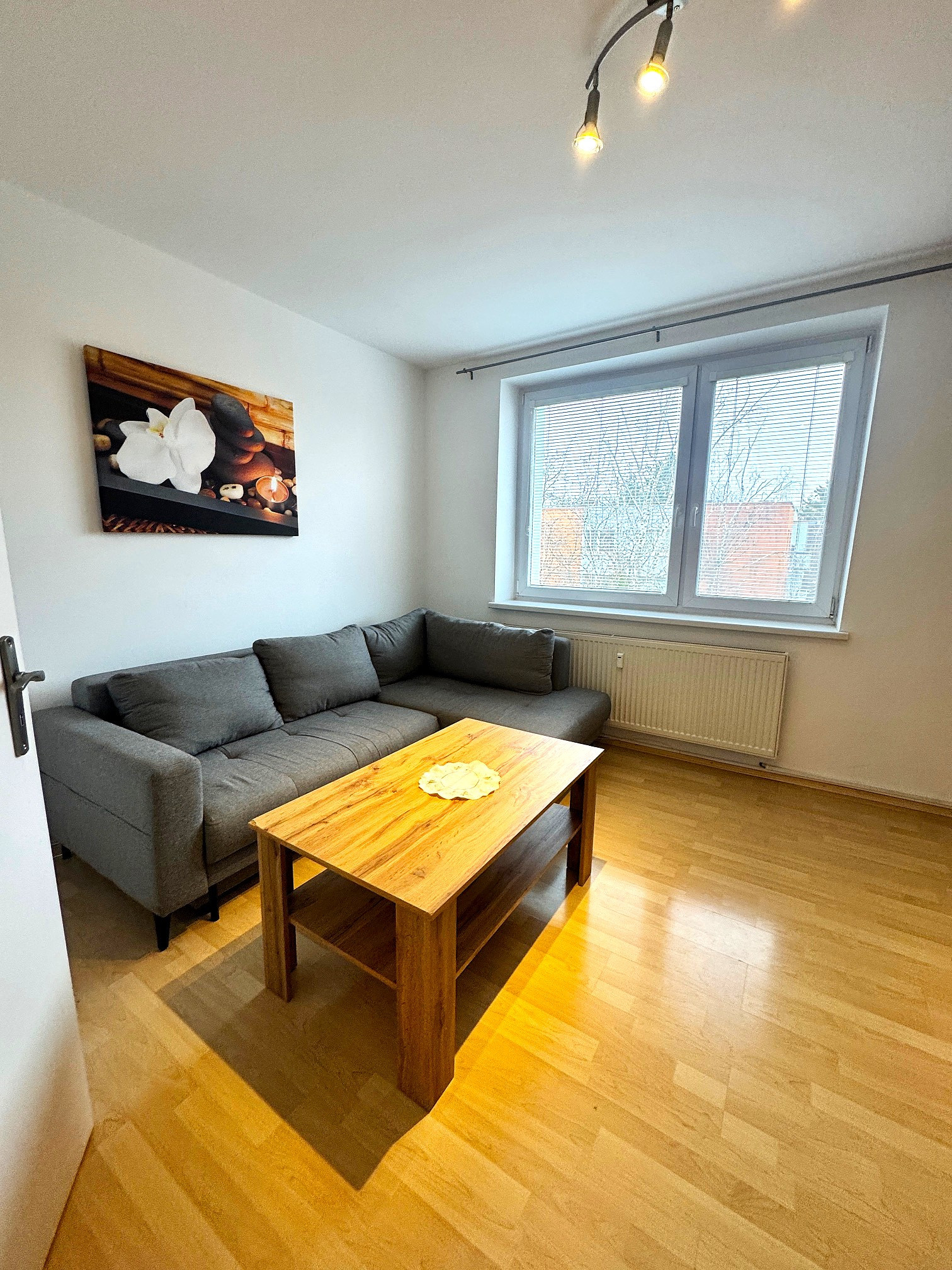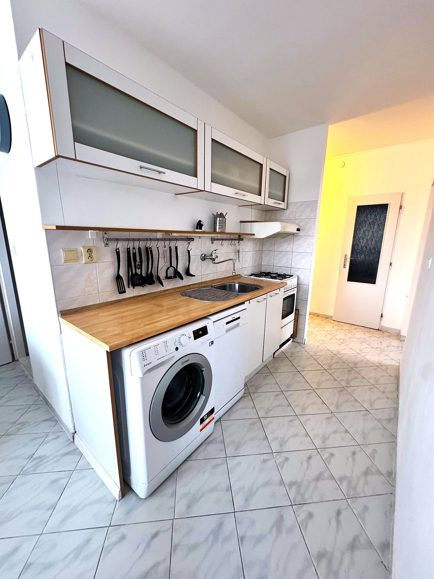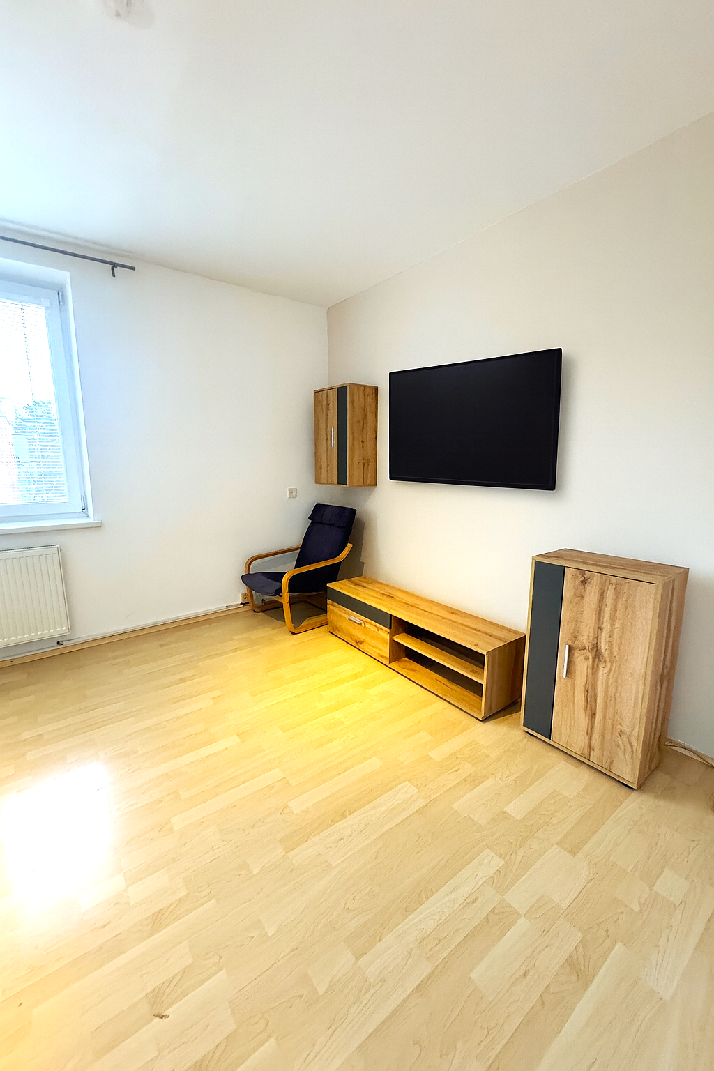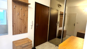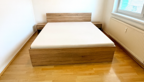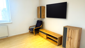 Vybavenie bytu: šatník, manželská posteľ, internet, jedálenský stôl+ stoličky, sedacia súprava, obývacia stena + tv, kuchynská linka, práčka, umývačka riadu, sporák, chladnička s mrazničkou.