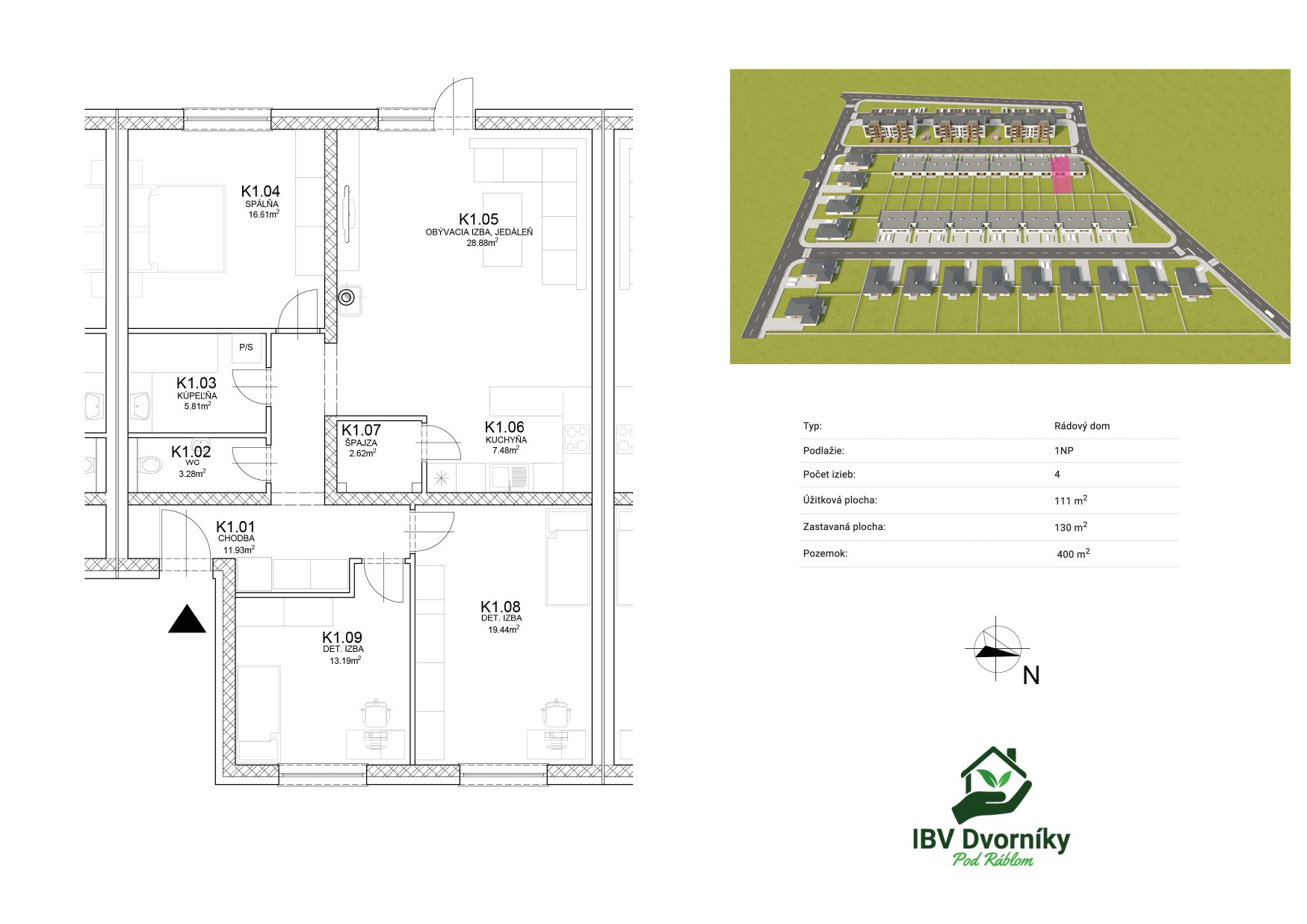 Ponúkame Vám posledný skolaudovaný 4-izbový rodinný dom v radovej zástavbe v projekte IBV Dvorníky Pod Hájkom. Dom je okamžite k dispozícii, stojí na rovinatom pozemku o výmere 400 m² a poskytuje moderné, komfortné a úsporné rodinné bývanie v pokojnom prostredí mimo hlavnej cesty.