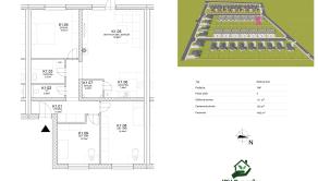Dispozícia vychádza z projektovej dokumentácie — priestranná obývačka s jedálňou, samostatná kuchyňa, kúpeľňa, WC, spálňa, dve detské izby, chodba a technické priestory.