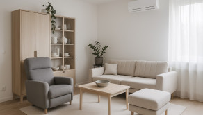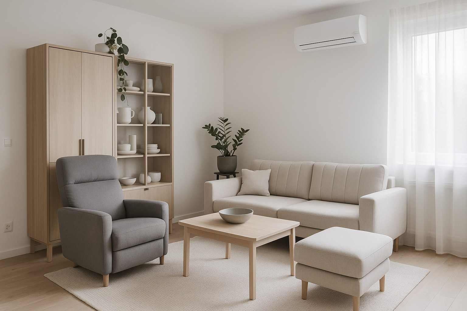 -obývacia izba so vstupom na balkón a novou klimatizáciou.
