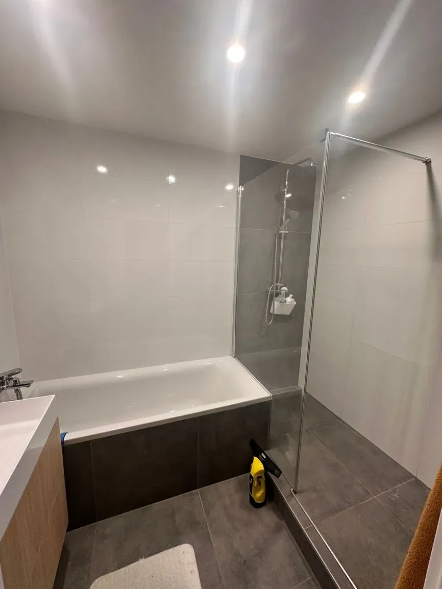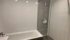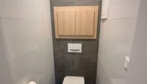 Kúpeľňa: sprchový kút, vaňa, vstavaná skriňa