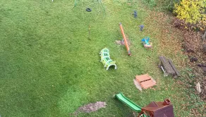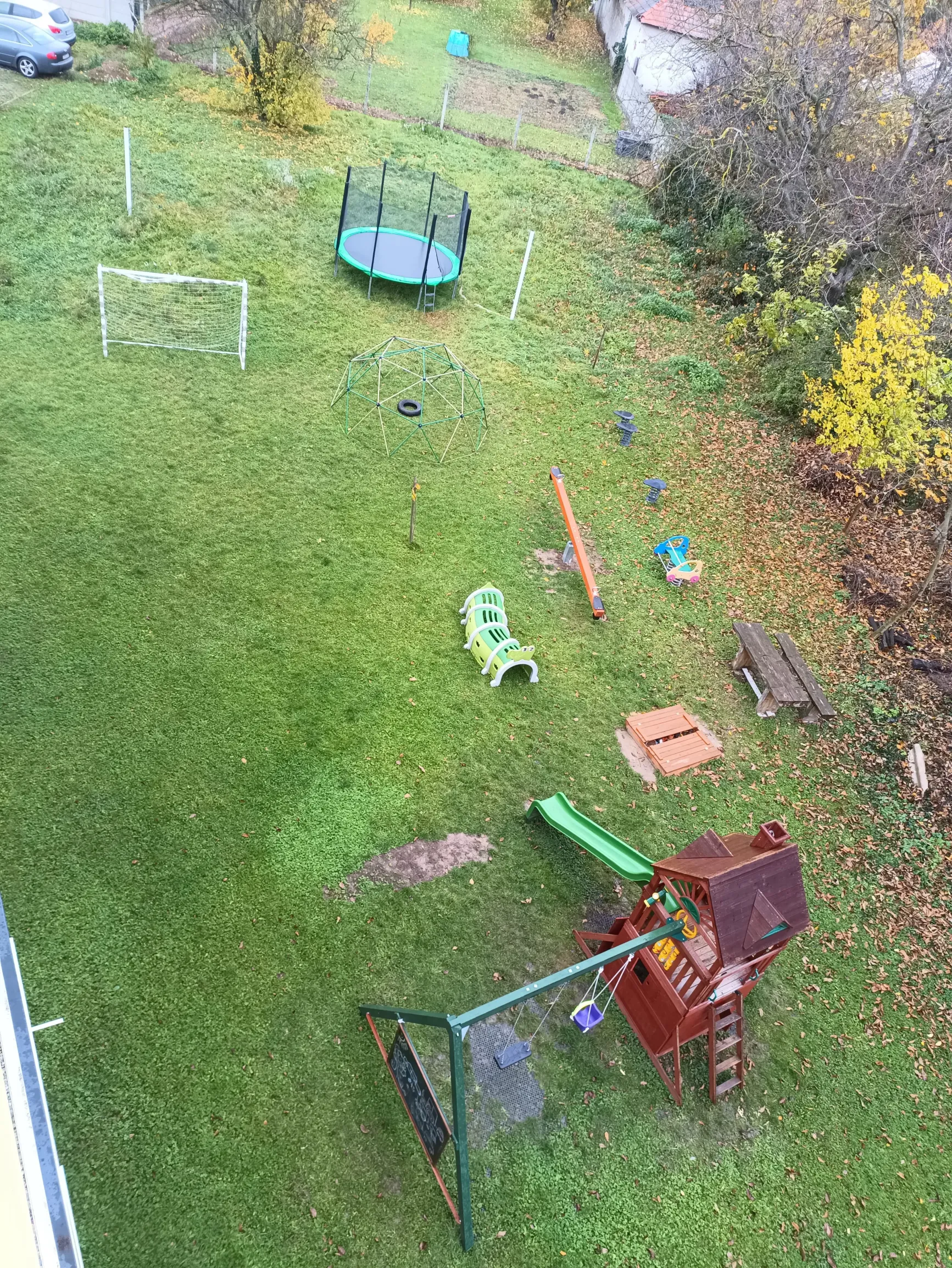 priestranný balkón s krásnym výhľadom na stromy a detské ihrisko