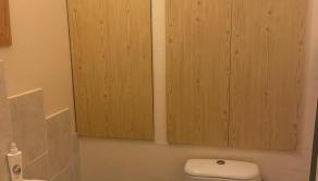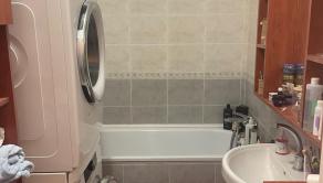 Samostatná kúpeľňa je murovaná, s vaňou a úložnými skrinkami.
