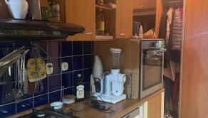 Obývačka má aj druhý vstup do kuchyne, v ktorej sa nachádza malá špajza, skvelá na uskladnenie potravín.