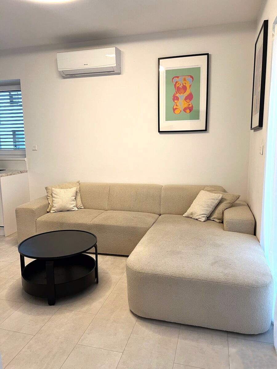 JKV Real so súhlasom majiteľa ponúka na prenájom moderný, kompletne zariadený 2-izbový byt, ktorý sa nachádza na 1. podlaží tehlovej bytovky – projekt VILKY CUKROVÁ. K bytu prináleží aj priestranná loggia (5,36 m²), pivničná kobka (5 m²) a vonkajšie parkovacie miesto. Vhodné pre jednotlivca alebo pár, prenajímateľ umožňuje aj malého psíka s vlasmi.