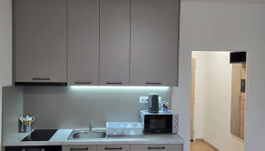 vstupná časť s kuchynskou linkou spojenou s obytnou miestnosťou