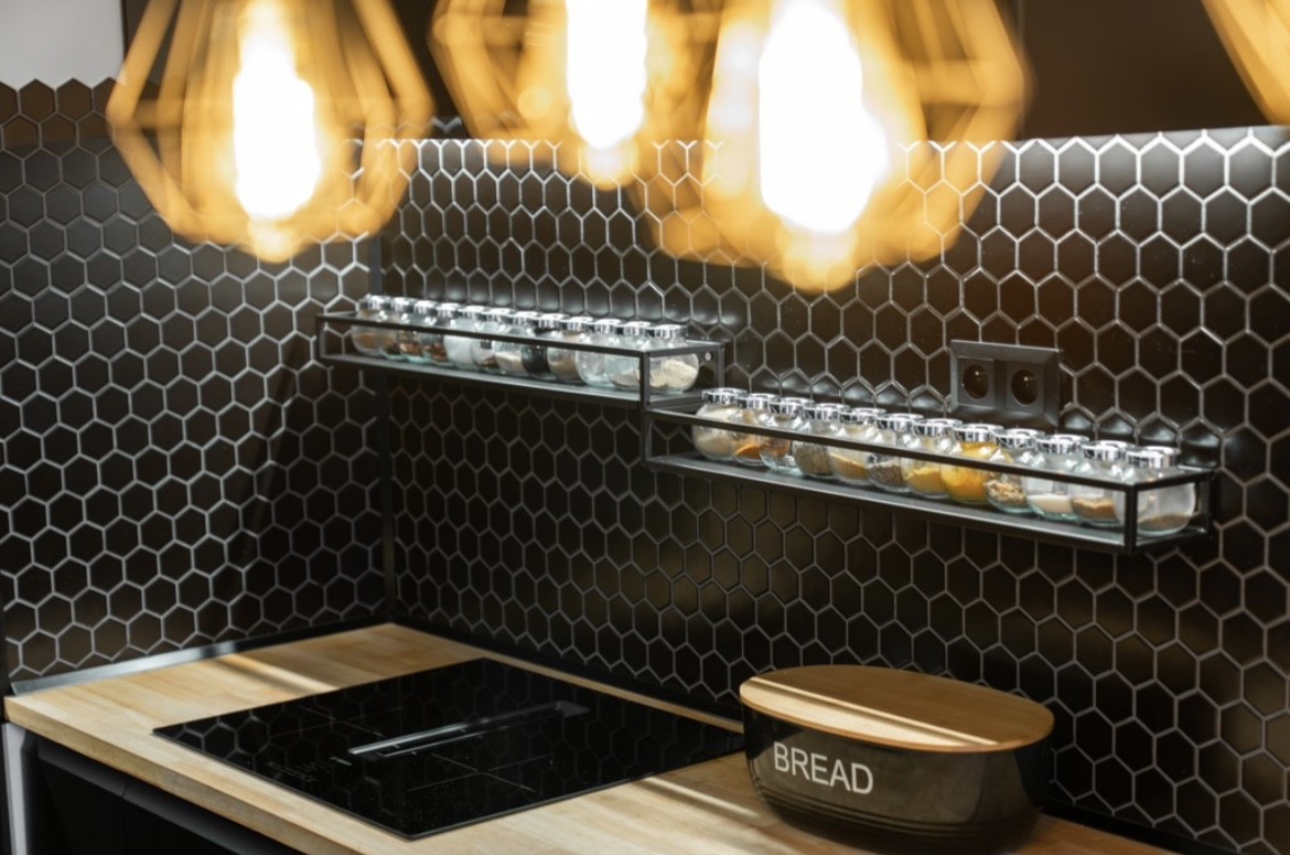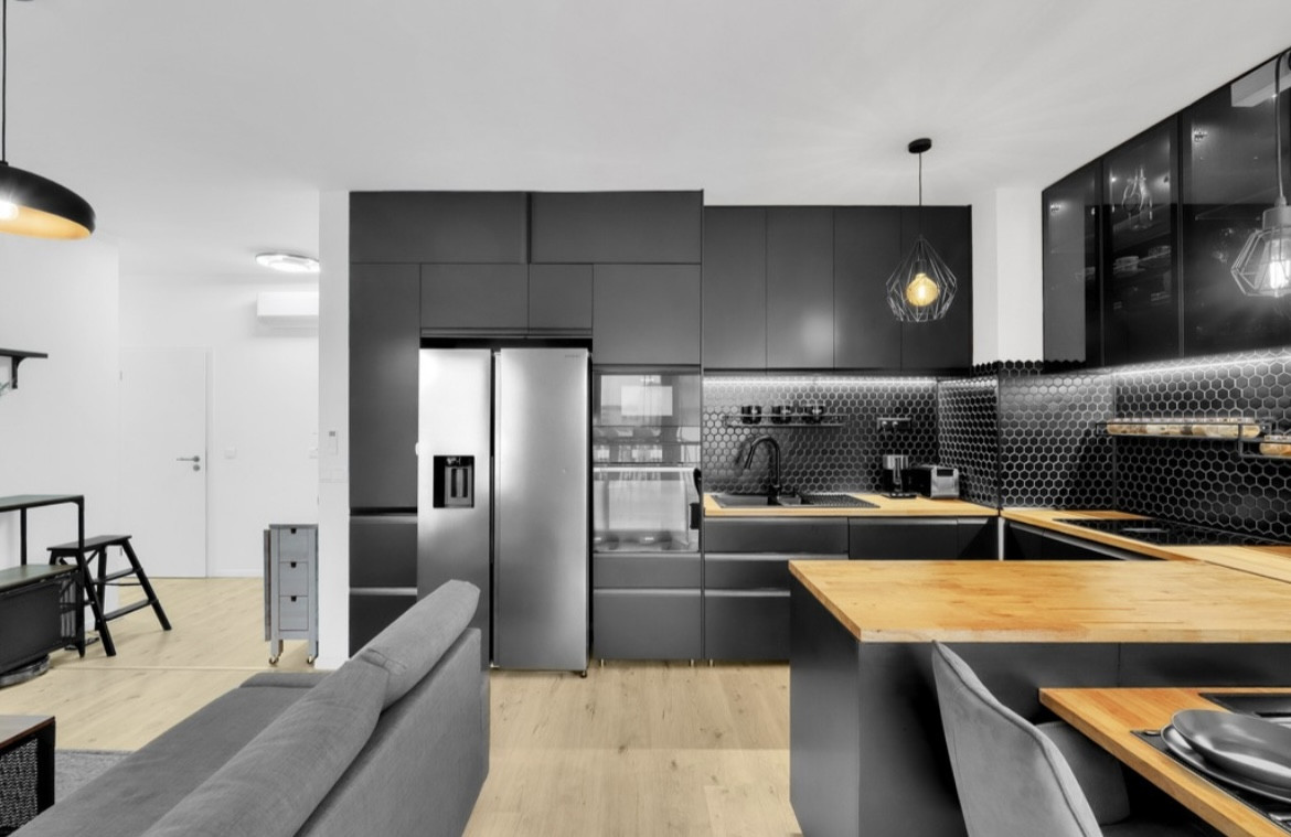 - prémiová kuchyňa: čierna matná linka, podsvietené horné skrinky, podsvietené vnútorné zásuvky
