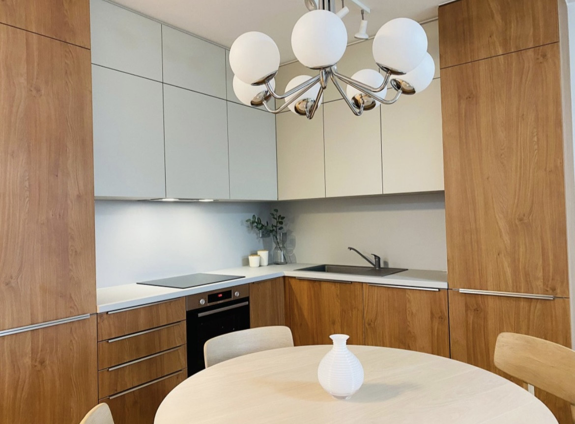 - otvorená dispozícia obývacieho priestoru - kuchyňa prepojená s obývacou izbou. Moderná kuchynská linka so zabudovanými spotrebičmi (vrátane umývačky riadu)
