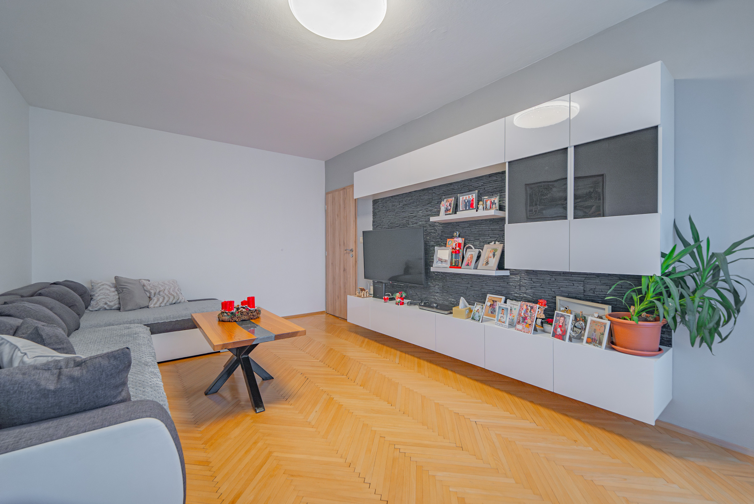 -precízne zachované parkety v obývacej izbe