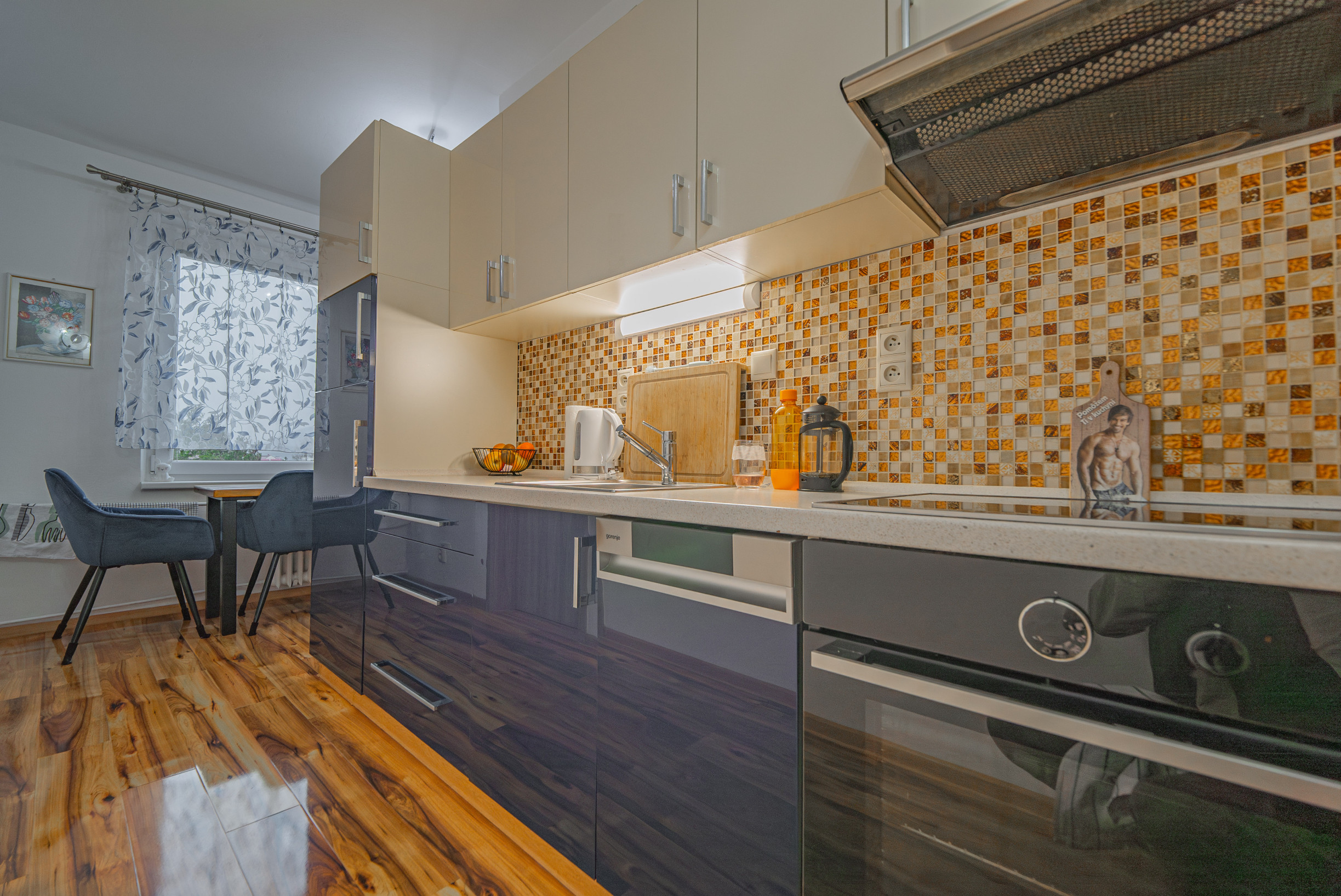 -priestranná kuchyňa s jedálenskym kútom a špajzou