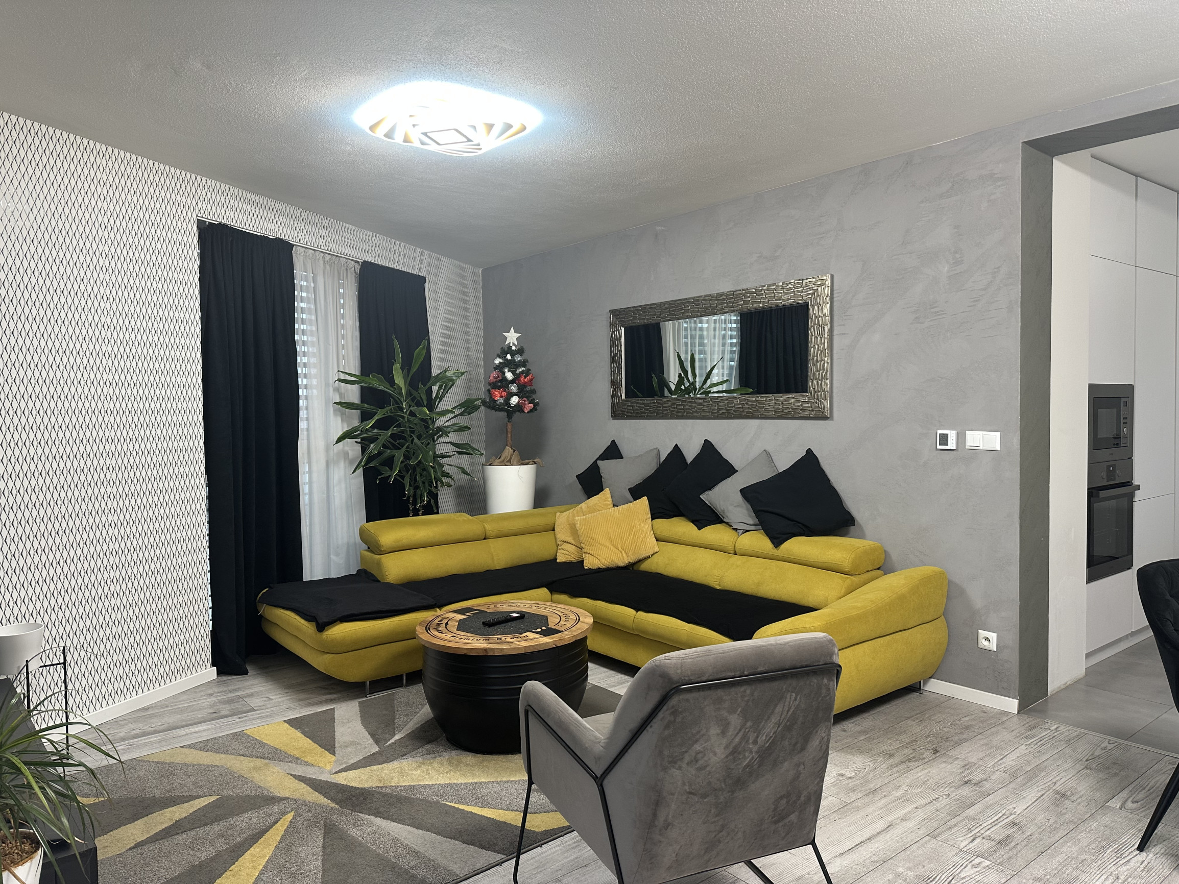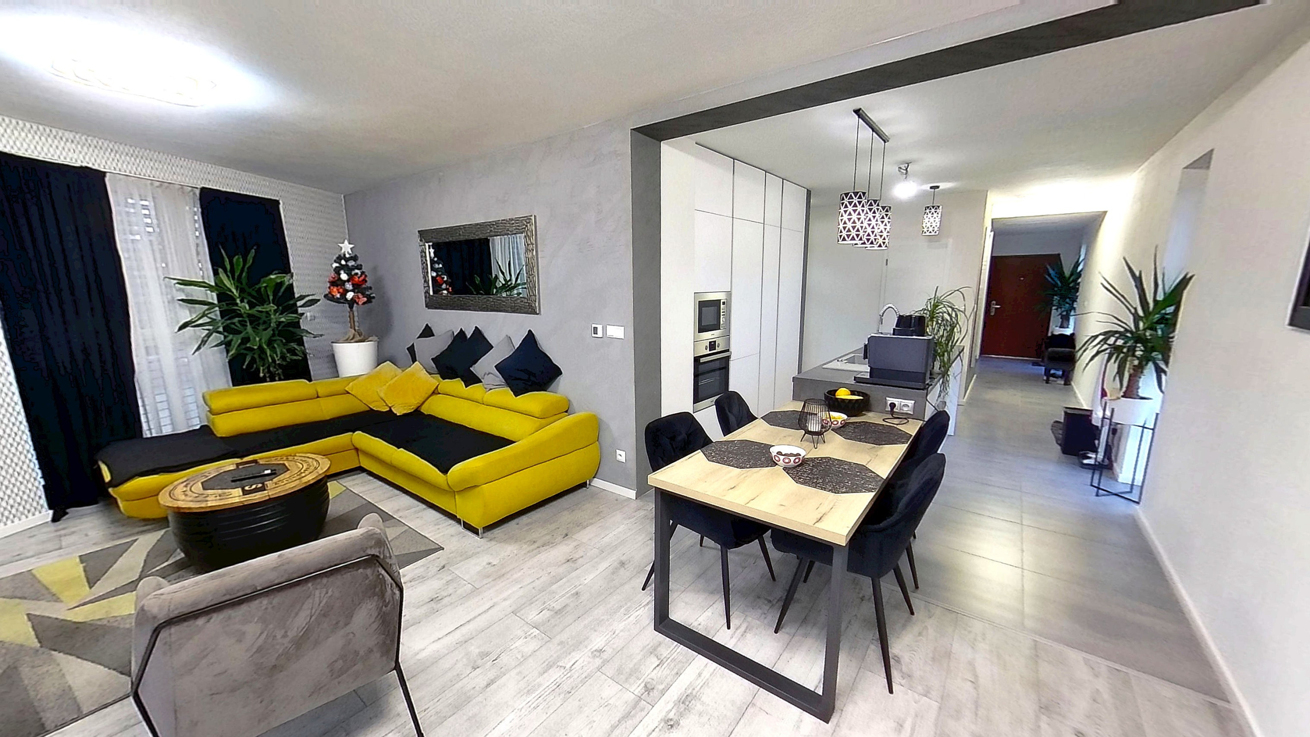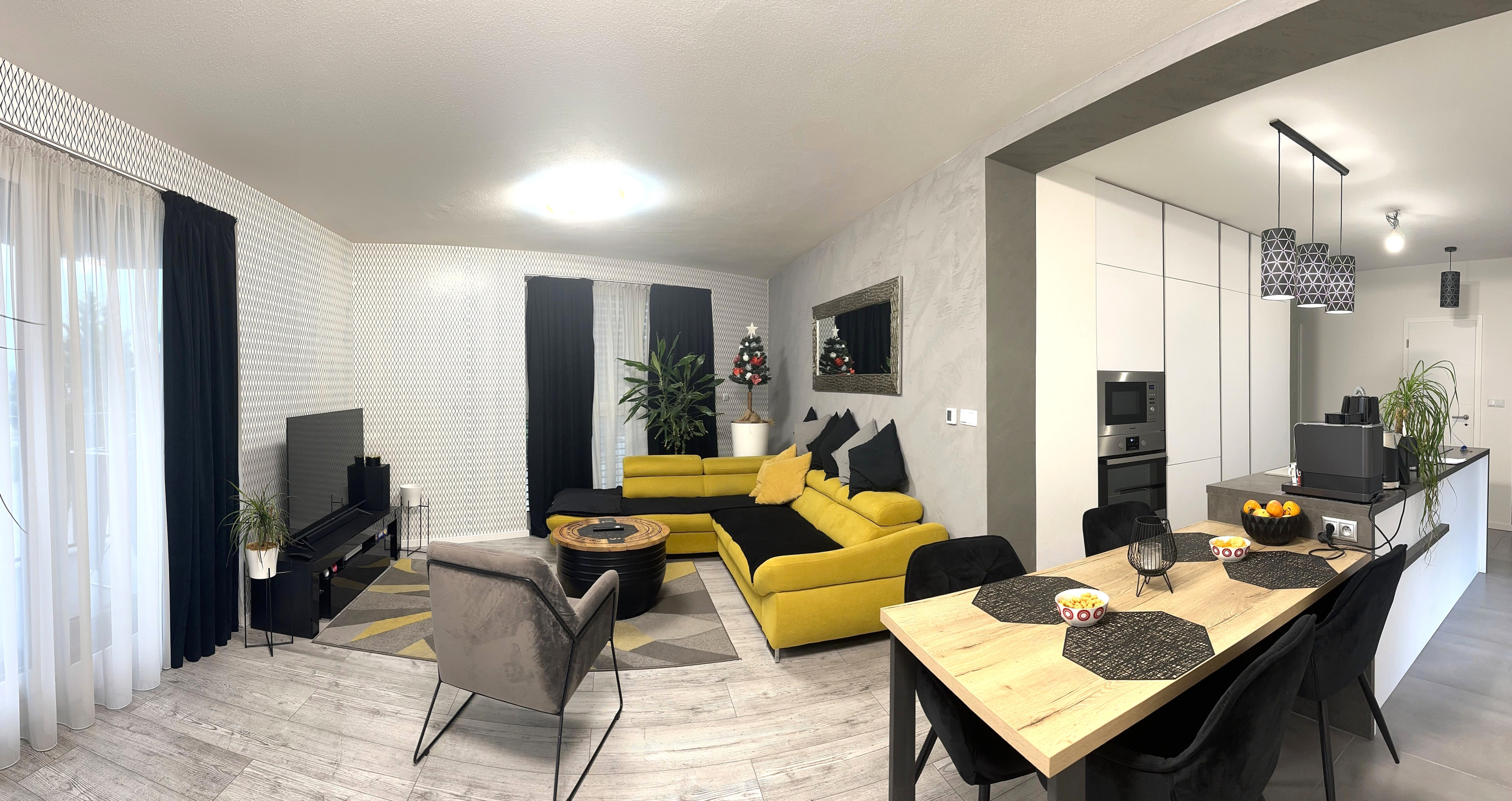 - Priestranná obývačka spojená s kuchyňou a jedálňou