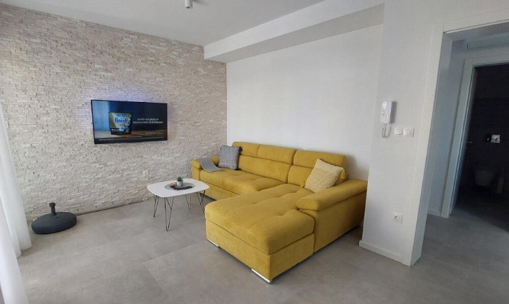 Byt je kompletne zariadený:veľký vstavaný šatník,skriňa, nočné stolíky, TV skrinka, police, veľký stôl so stoličkami,gauč, veľký sprchový kút,vstavaná umývačka riadu 60 cm, práčka, vysávač, žehlička s doskou, chladnička s mrazničkou, kávovar, internet,TV pripojenie 4ka, žalúzie, sieťky na oknách, sušiak, veľká posteľ