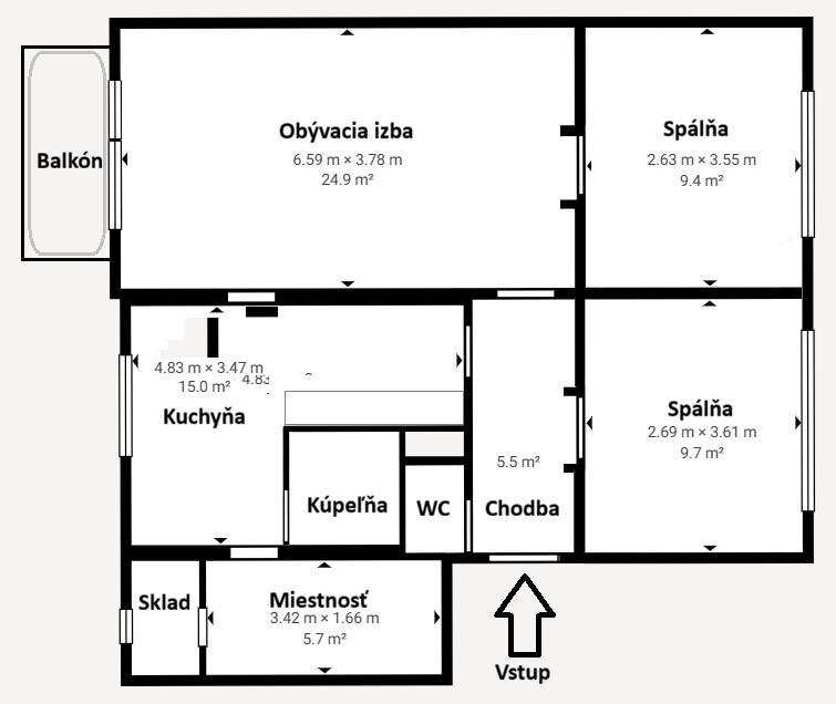 V prílohe inzerátu je k dispozícii pôdorys s rozmermi miestností, vďaka ktorému si viete presne predstaviť možnosti otvorenia a úprav bytu.