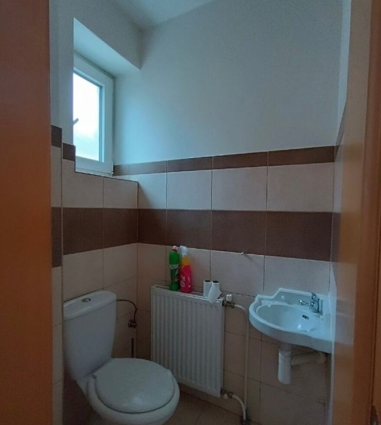 Na prvom podlaží je kuchyňa s dvoma izbami, kúpelňa a oddelené WC, drevené schodisko vedie na druhé podlažie, v ktorom je chodba a tri izby, kúpeľňa s WC .