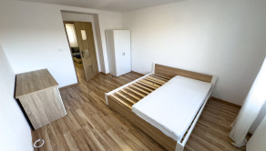byt je kompletne zariadený: manželská posteľ, skriňa, kuchynská linka so spotrebičmi (chladnička, elektrický sporák, rúra), práčka
