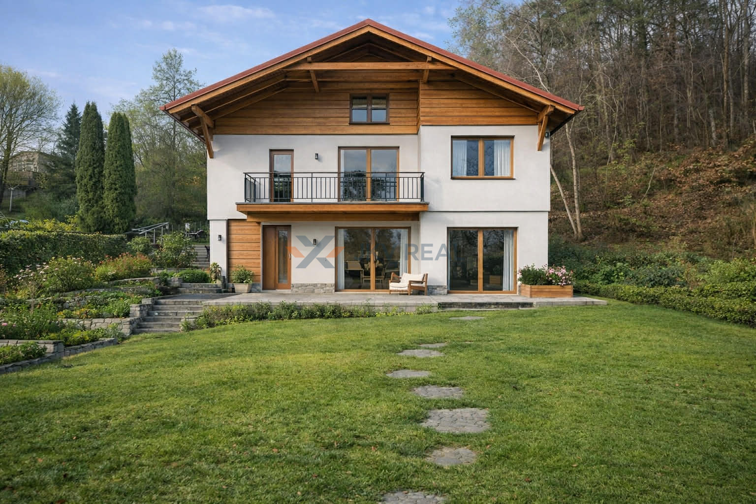 Prízemie pozostáva z predsiene, kuchyne a garáže. Poschodie tvorí kúpeľňa, obývačka s krbom, špajza a dve izby. Nad týmto podlažím je veľká povala, ktorú je možné upraviť na ďalší obytný priestor. Súčasťou je aj terasa a kamenná pivnica.