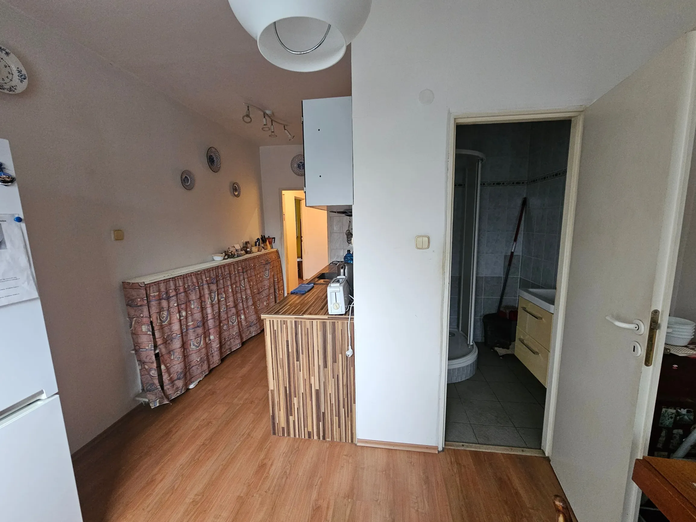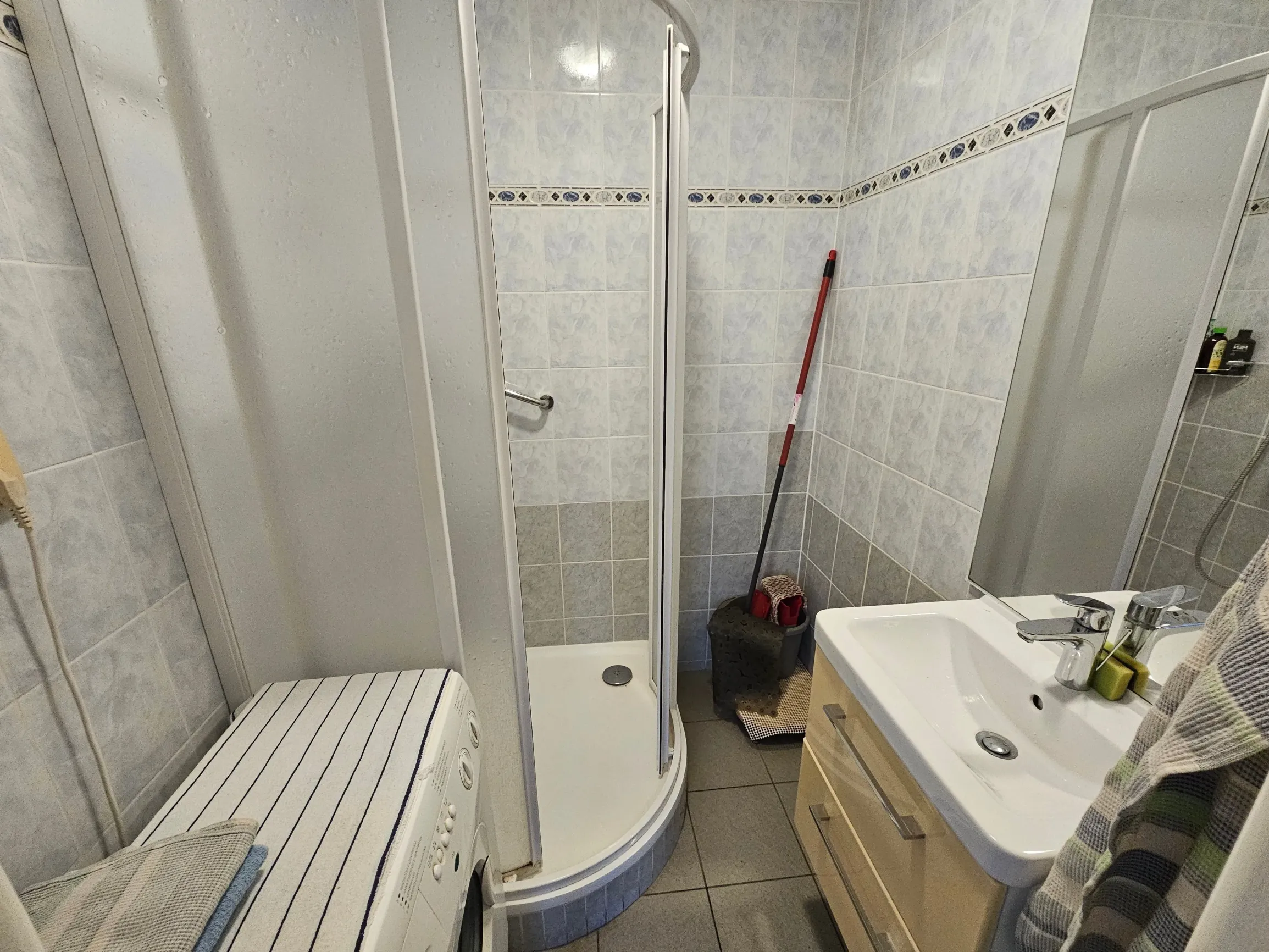 - Kúpeľňa so sprchovým kútom a práčkou